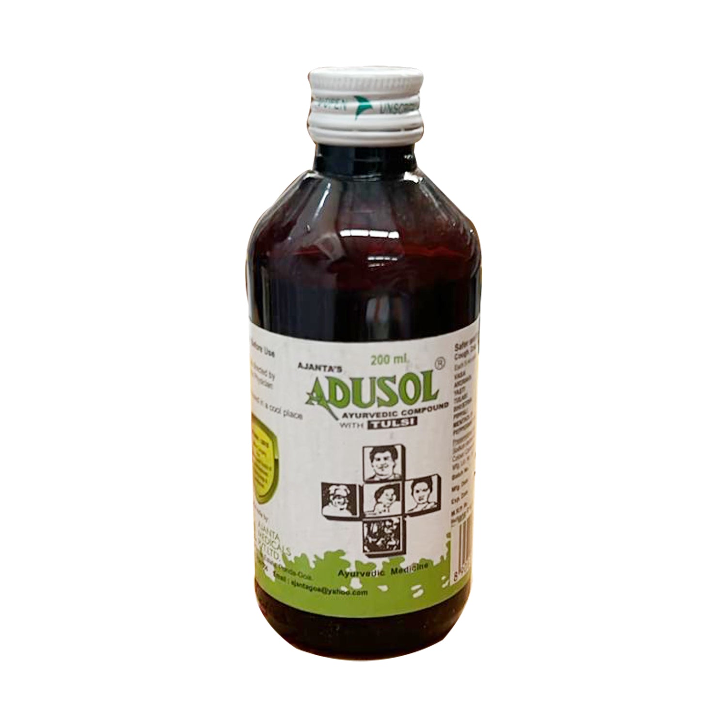 Adusol Cough Syrup 200ml – Ajanta available at Tales of India. Effective syrup for relief from cough, throat irritation & respiratory discomfort.