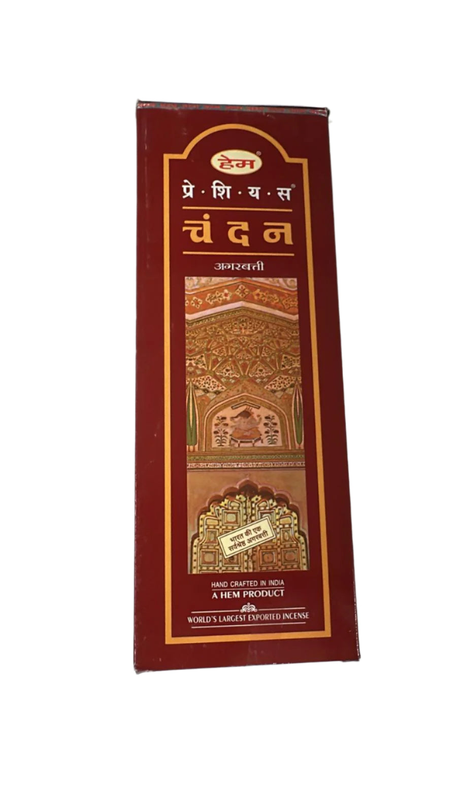 Hem Agarbatti Precious Chandan (Incense Sticks) 10g available at Tales of India. Experience the calming and spiritual aroma of sandalwood, perfect for meditation, prayer, and relaxation.