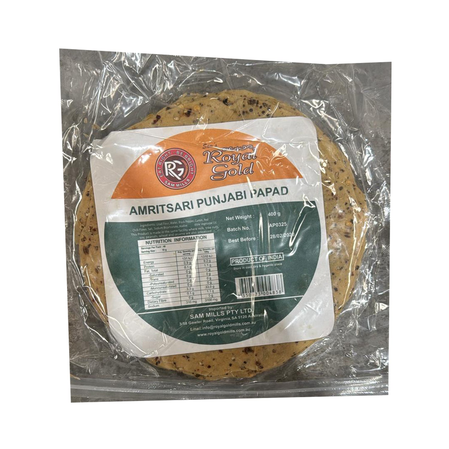 Amritsari Papad 400g – Royal Gold is available at Tales of India. Crispy, spiced papads from Punjab, perfect as a snack, starter, or side with meals.