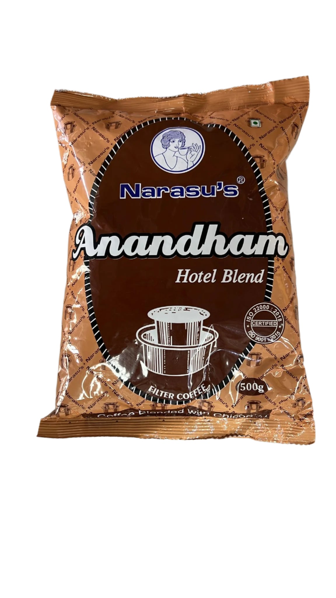 Narasu's Anandham Hotel Blend (Filter Coffee) 500g available at Tales of India. A premium South Indian filter coffee blend with rich aroma and smooth, full-bodied taste.