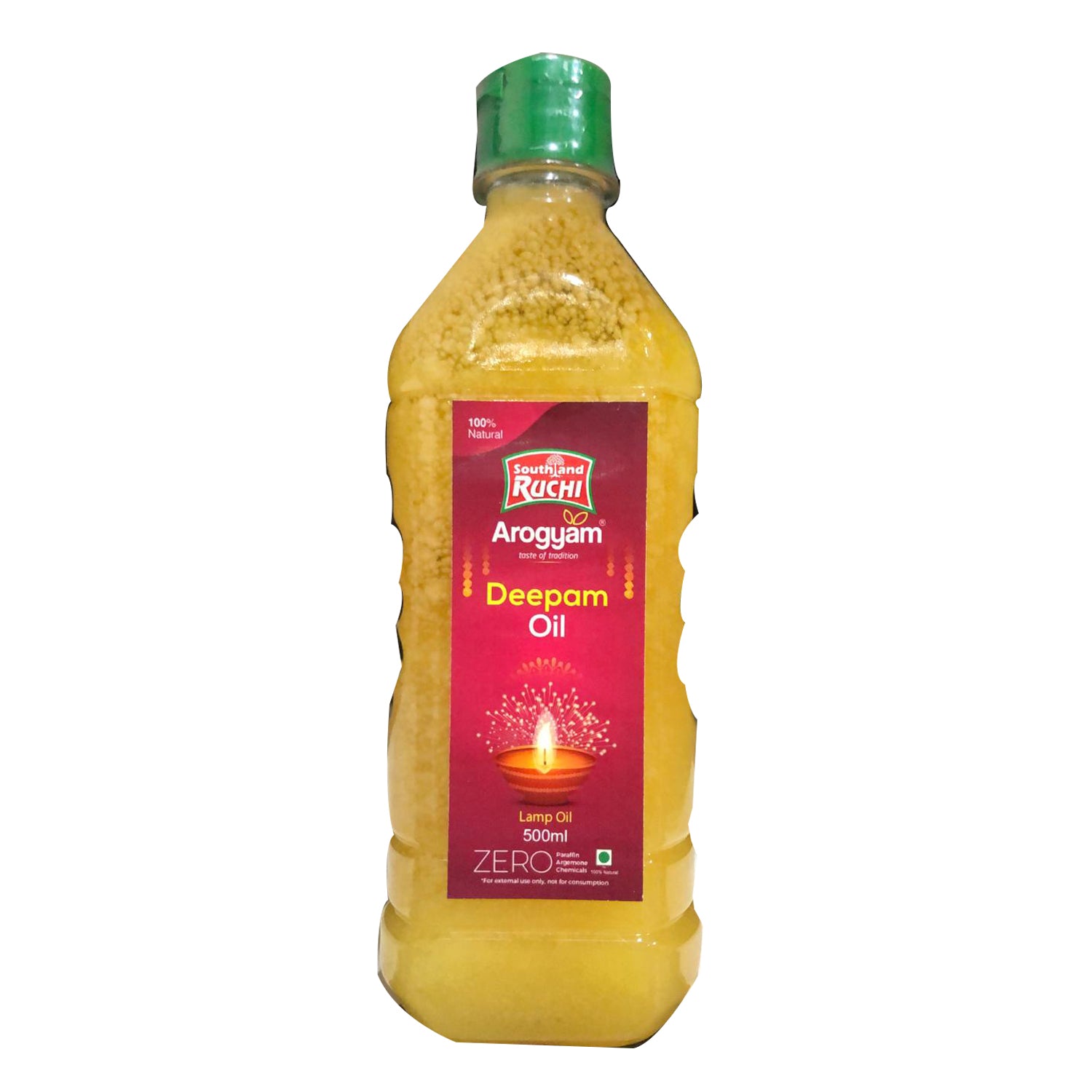 Arogyam Dheepam Oil is a lamp oil, specifically designed for religious and spiritual rituals. It is a blend of various oils, including sesame, castor, coconut, and mahua oil, and is used to light lamps during prayers, ceremonies, and other auspicious occasions. The oil is believed to create a serene and positive atmosphere, enhancing the spiritual experience