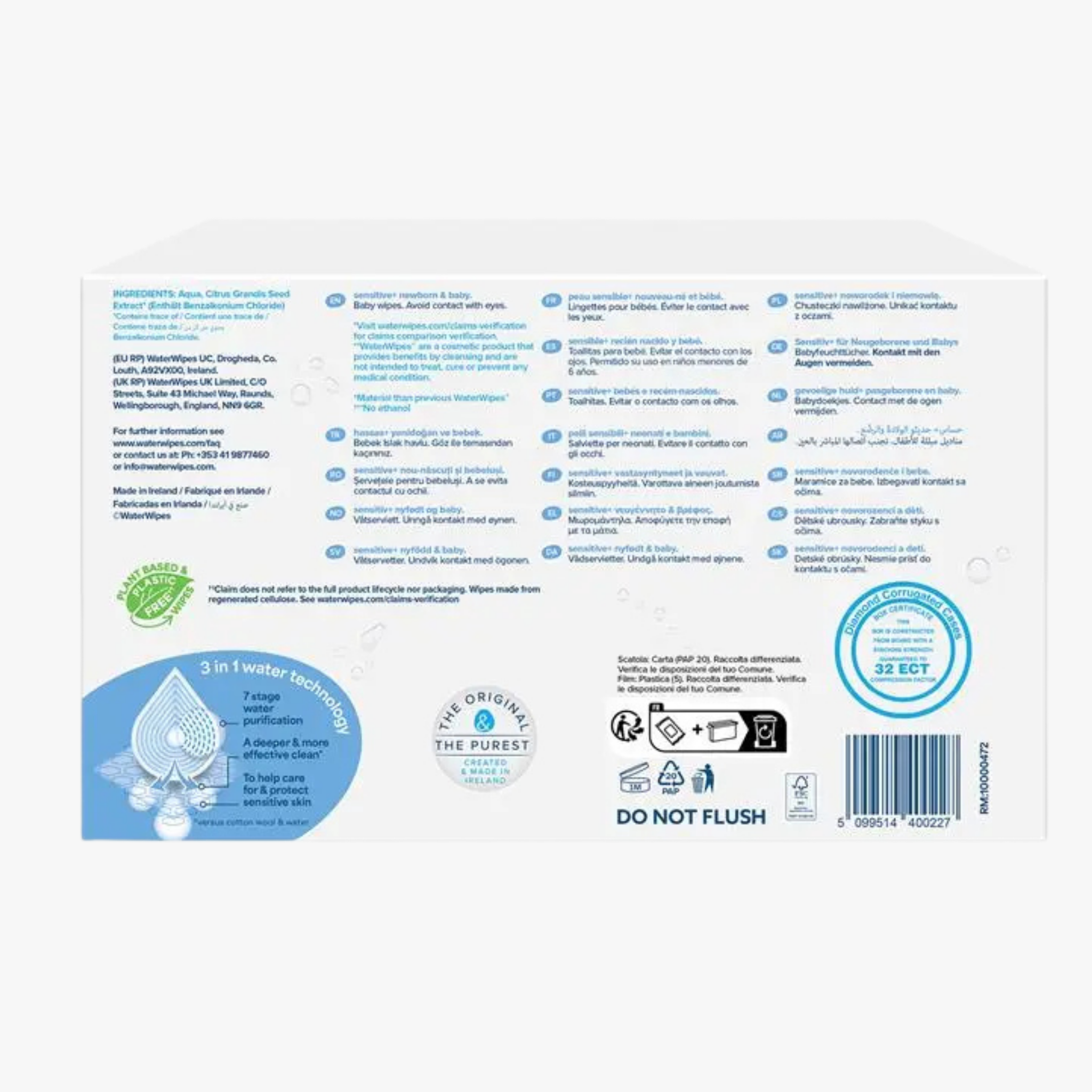 WaterWipes Baby & Newborn Sensitive Wipes are ultra-pure wipes designed to gently cleanse and protect even the most delicate skin. Made with 99.9% purified water and a touch of fruit extract, they provide a safe and soothing clean for newborns, infants, and babies with sensitive or eczema-prone skin. Thicker, softer, and stronger than before, these wipes handle messes effectively while maintaining gentle care.