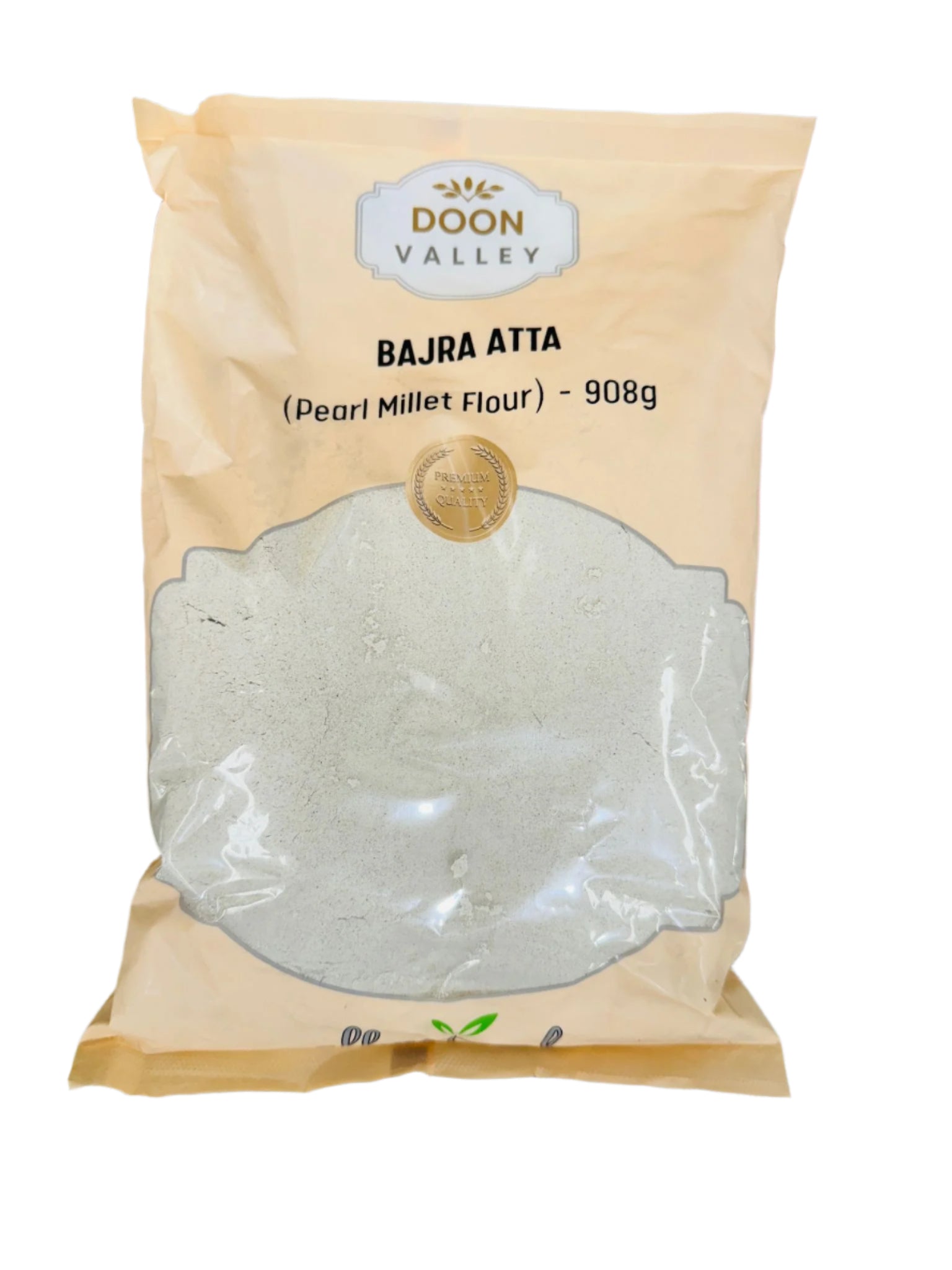 Doon Valley Bajri Flour 908g available at Tales of India. Nutritious and gluten-free pearl millet flour ideal for making rotis, bhakris, and traditional Indian dishes.