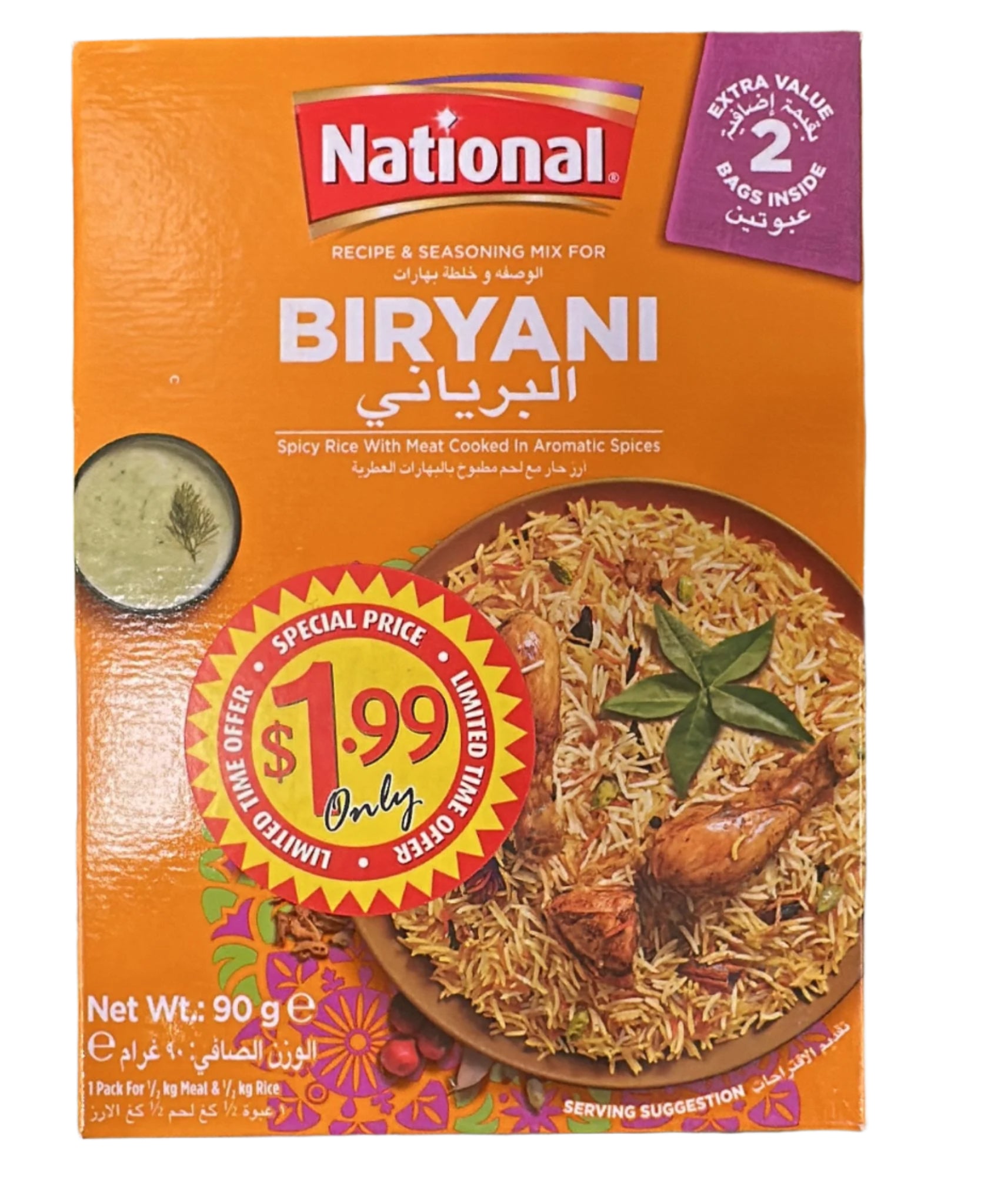 National Biryani Masala 90g available at Tales of India. An aromatic blend of spices to prepare flavorful and authentic Biryani dishes with ease.
