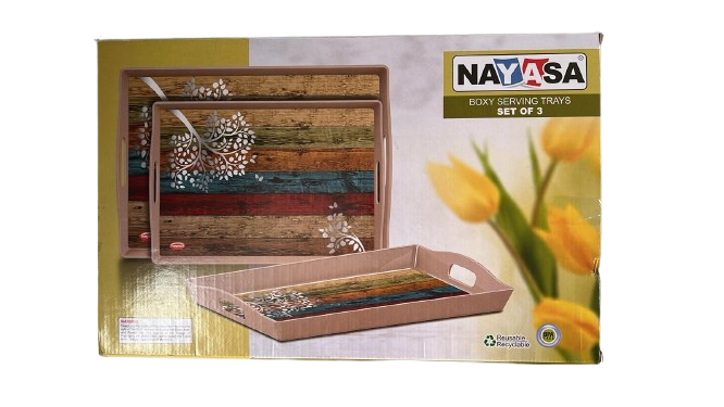 Nayasa Boxy Serving Trays Set Of 3 available at Tales of India. Durable, stylish trays in 3 sizes for serving and organizing.