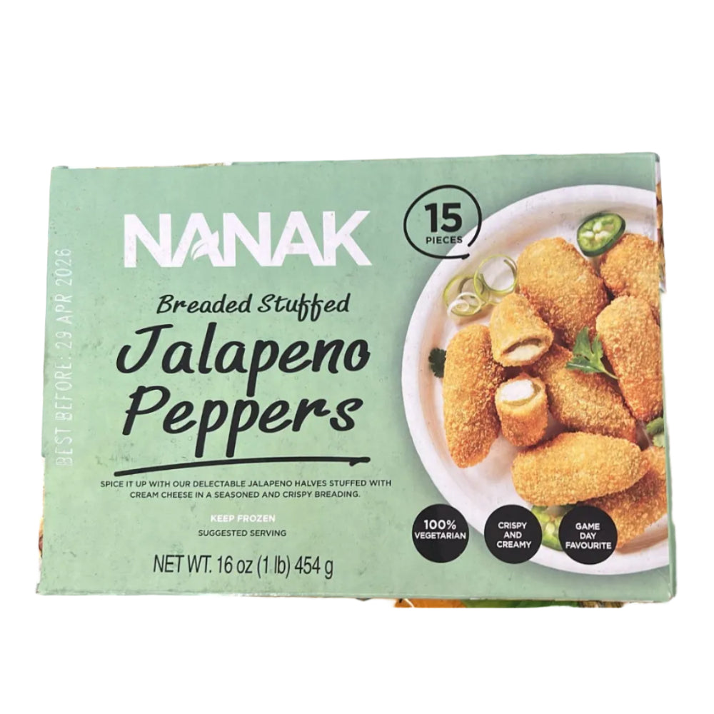 Nanak Jalapeno Peppers is a product of India brought to you by Tales Of India. Nanak Jalapeno Peppers are breaded jalapeno filled with cream cheese. Get in touch with us for more information.