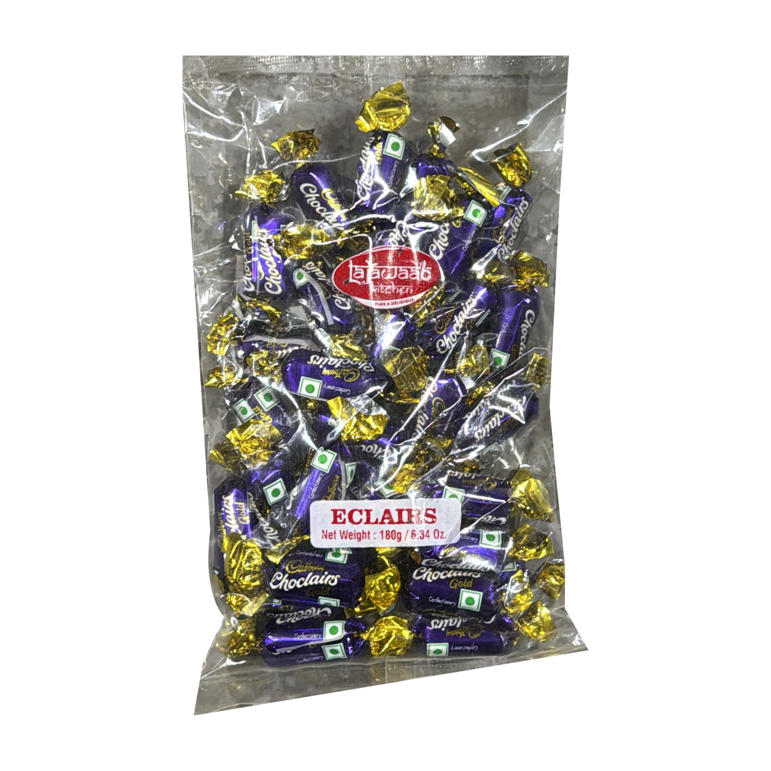 Cadburi Choclairs Eclairs 200g - Lajawaab Kitchen Cadbury Choclairs Eclairs are individual toffee candies with a chewy caramel outer layer and a soft, rich Cadbury chocolate liquid filling inside. The candy offers an indulgent, creamy chocolate experience combined with the sweetness of caramel, making it a popular treat for people of all ages for personal enjoyment or sharing during celebrations and gatherings.