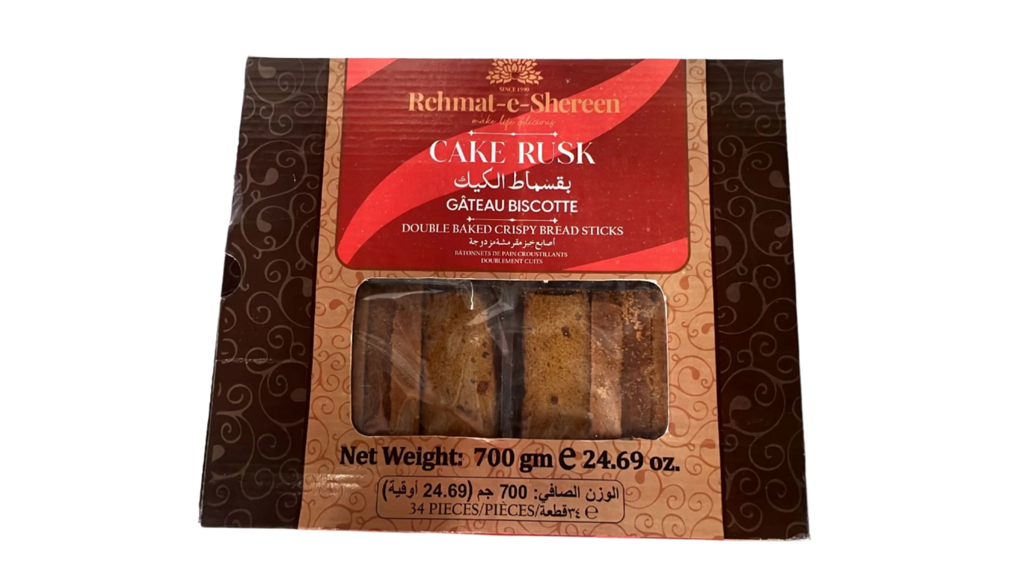Rehmat-e-Shereen Cake Rusk 700g available at Tales of India. Crispy, golden-baked tea-time delight, perfect with chai, coffee, or as a light snack anytime.