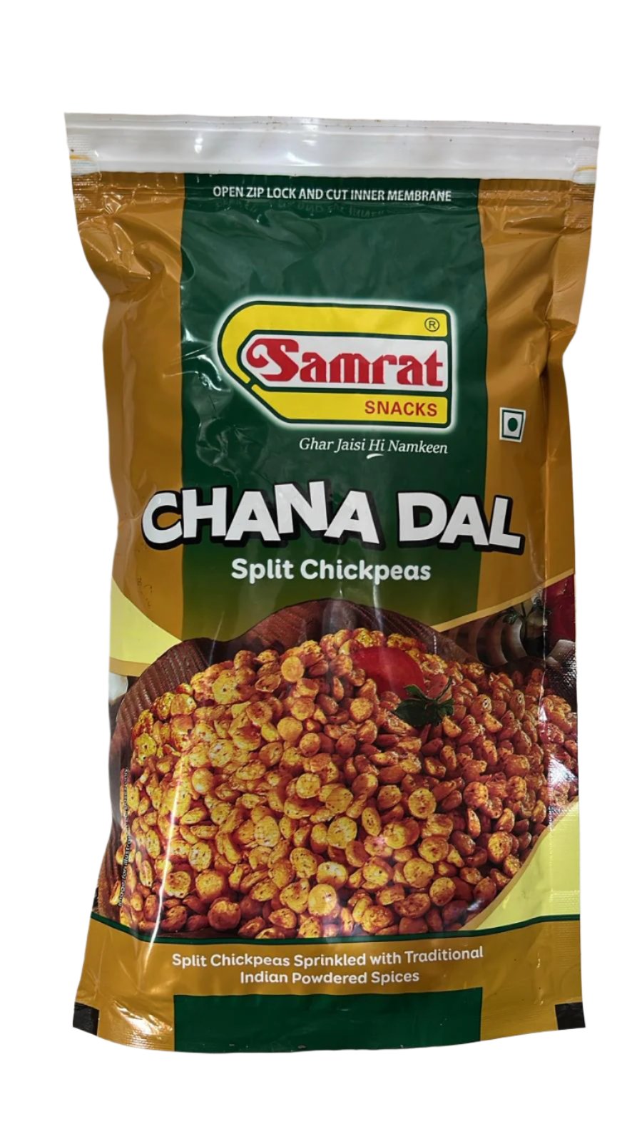 Samrat Chana Dal (Split Chickpeas) 400g available at Tales of India. A crispy and salty Indian namkeen made from split chickpeas, perfect for snacking anytime.
