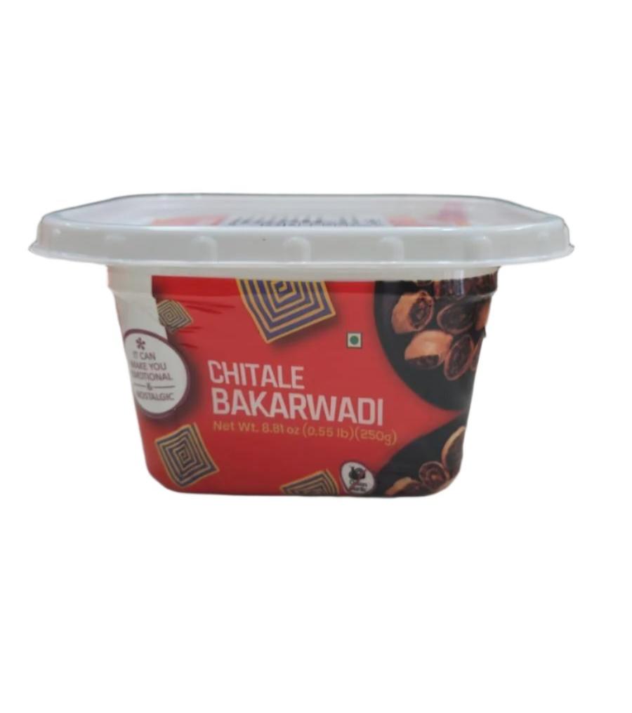 Chitale Bakarwadi 200g available at Tales of India. Crunchy and spicy Maharashtrian snack rolls filled with a tangy-sweet-spicy mix perfect for tea-time or festive snacking.