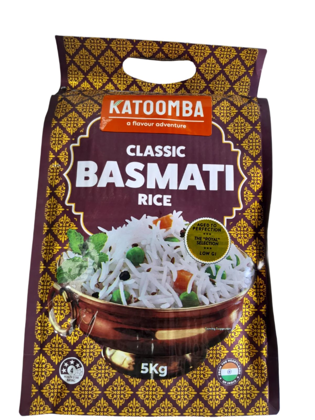 Katoomba Classic Basmati Rice 5Kg available at Tales of India. Aromatic long-grain rice ideal for biryanis, pulaos, and everyday meals.