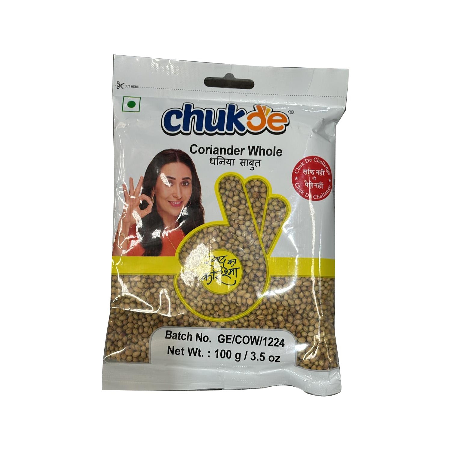 Chukde Coriander Whole (100g), also known as Dhania Sabut, is a spice derived from the seeds of the coriander plant. It's a common ingredient in Indian cooking, adding a fragrant and slightly citrusy flavor to both sweet and savory dishes. Chukde's coriander is hygienically packed, retaining its fresh, earthy notes and is often used in curries, soups, and marinades. It's also known for potential health benefits, including aiding digestion and potentially lowering bad cholesterol.