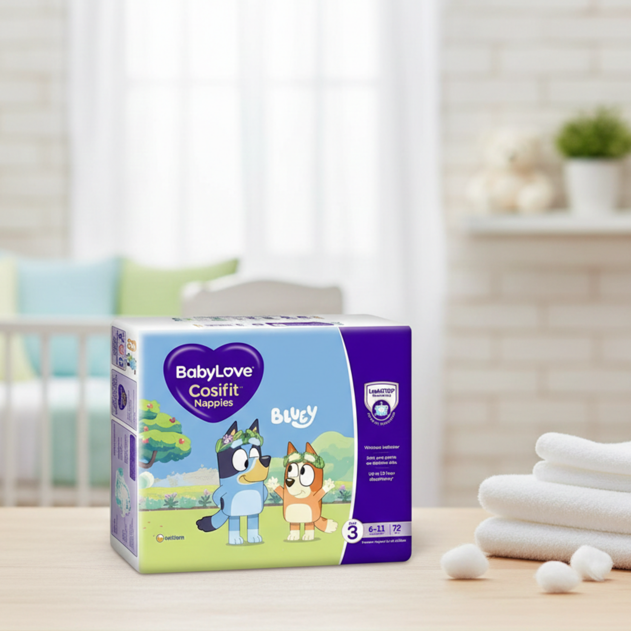 • Fun Bluey designs on select packs for a playful, baby-friendly touch