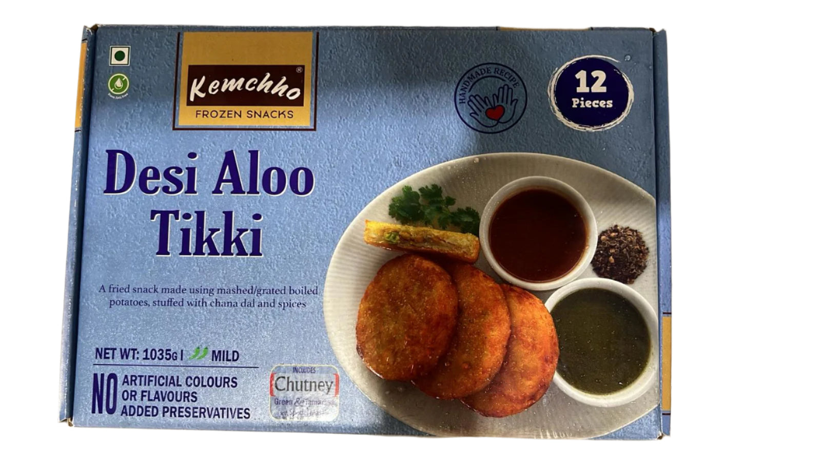 Kemchho Desi Aloo Tikki 12pcs (Frozen Snacks) available at Tales of India. Crispy, spiced potato patties perfect as a snack, starter, or chaat topping.