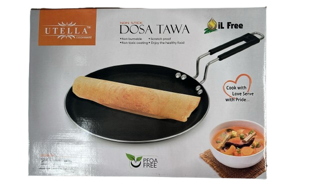 Utella Non Stick Dosa Tawa available at Tales of India. Perfect for crispy dosas, chapatis, and pancakes. Explore more cookware like Non Stick Kadai, Frying Pan, and Saucepan.