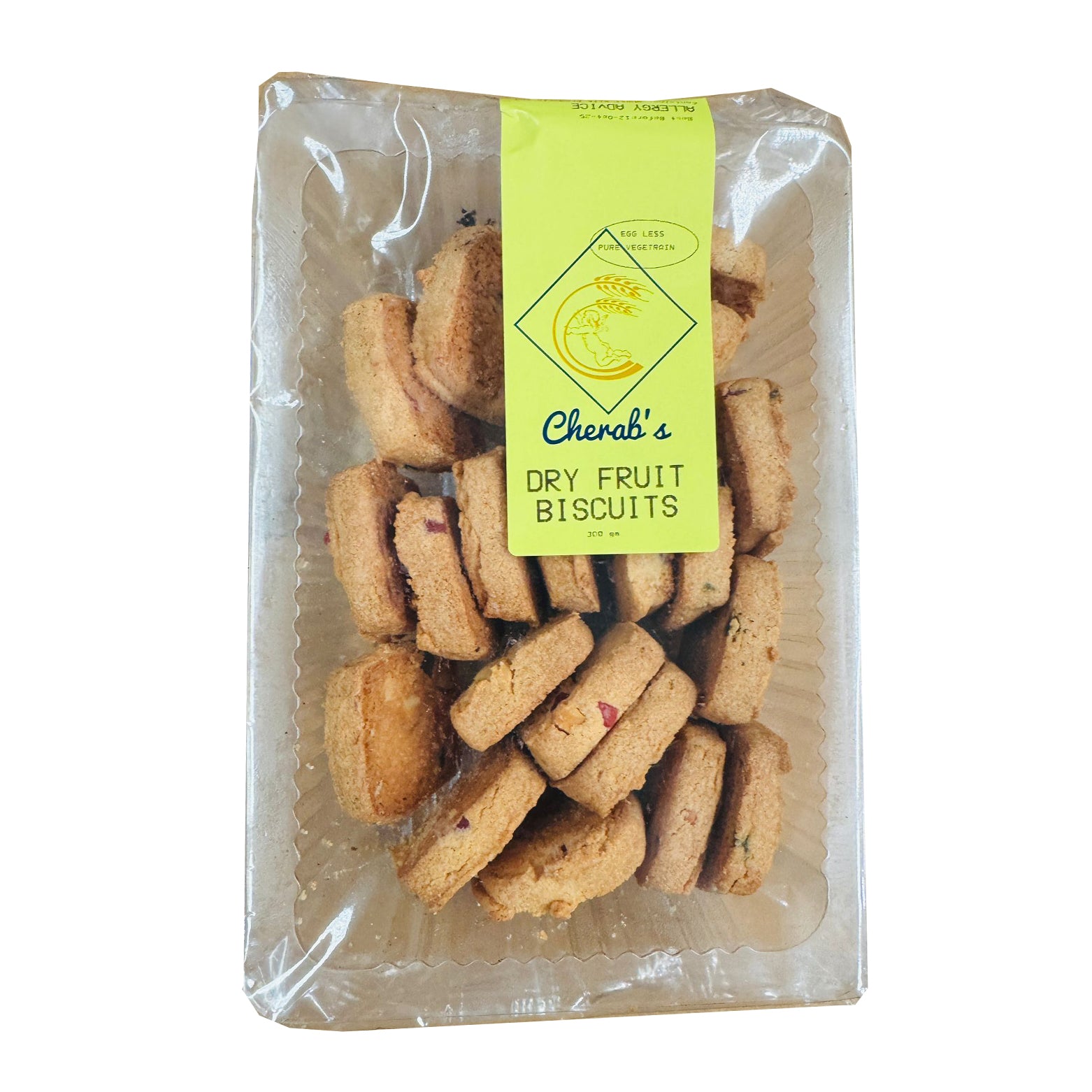 Dry Fruit Biscuit 300g – Cherab's available at Tales of India. Crunchy, buttery biscuits blended with dry fruits for a wholesome and tasty snack.