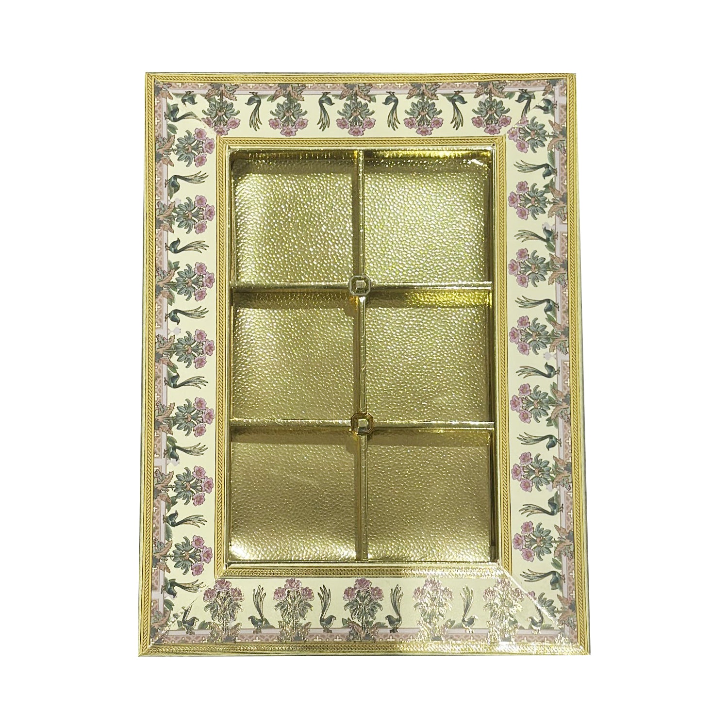 Dry Fruit Thalis 6 Portion Design 2 It keeps your dry fruits fresh for a long time and is safe to use because it doesn't have harmful chemicals. Whether you give it as a Diwali gift or use it as decoration, this set shows both beauty and culture. It's more than just a container; it shows how beauty and usefulness can come together. Get the Dry Fruit Thalis 6 Portion Design 2 to make your space look better and enjoy celebrations in a fancy way.