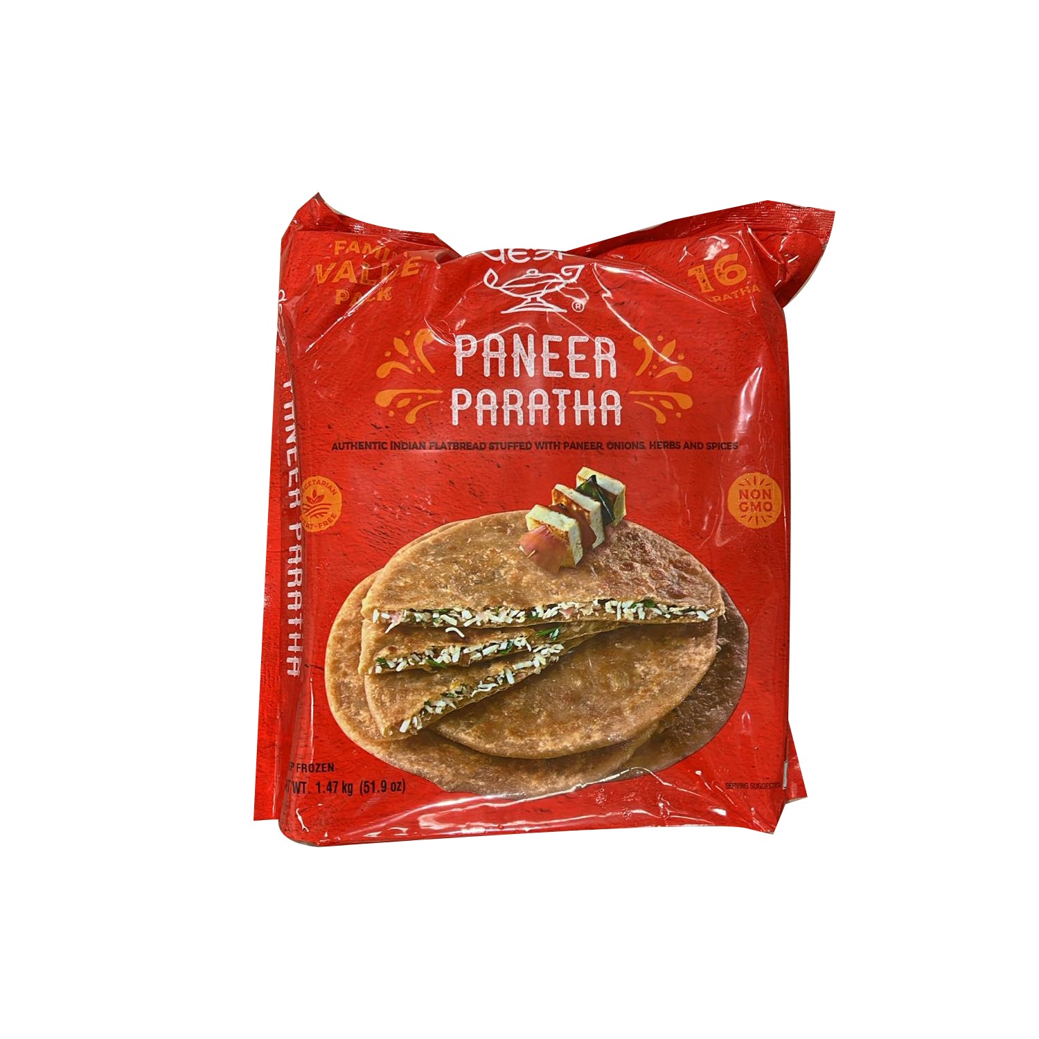 A Family Pack of Deep Paneer Parathas typically contains 16 pieces of the popular Indian flatbread, stuffed with a spiced paneer (Indian cottage cheese) filling. These parathas are known for their soft and flaky outer layer and a rich, flavorful paneer filling. They are a convenient and delicious option for a main course or