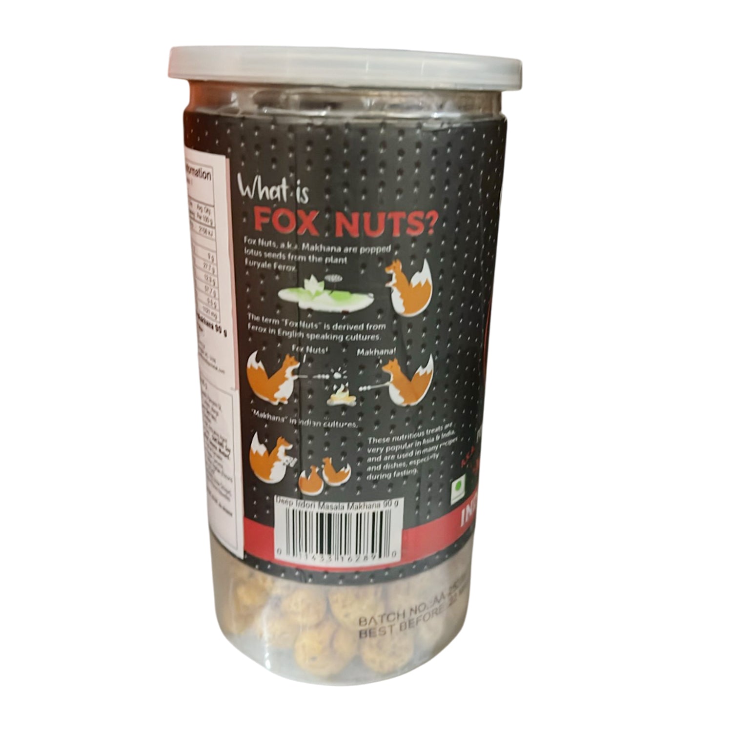 Deep's Indori Masala Makhana (90g) is a crunchy, spicy, tangy snack made from popped lotus seeds (fox nuts) seasoned with a zesty Indian spice blend, offering a nutritious, high-protein, fiber-rich, low-calorie alternative to fried snacks, capturing the bold flavors of Indore's street food for a healthy, guilt-free munch anytime. It's gluten-free, packed with antioxidants, and perfect for tea time or movie nights, bringing traditional flavors to a modern, convenient format.