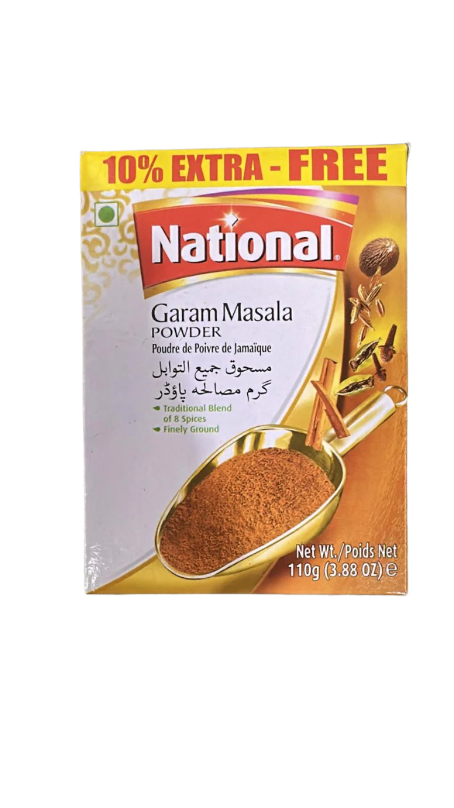 National Garam Masala Powder 110g available at Tales of India. A classic spice blend that adds warmth, depth, and rich aroma to your favorite Indian dishes.