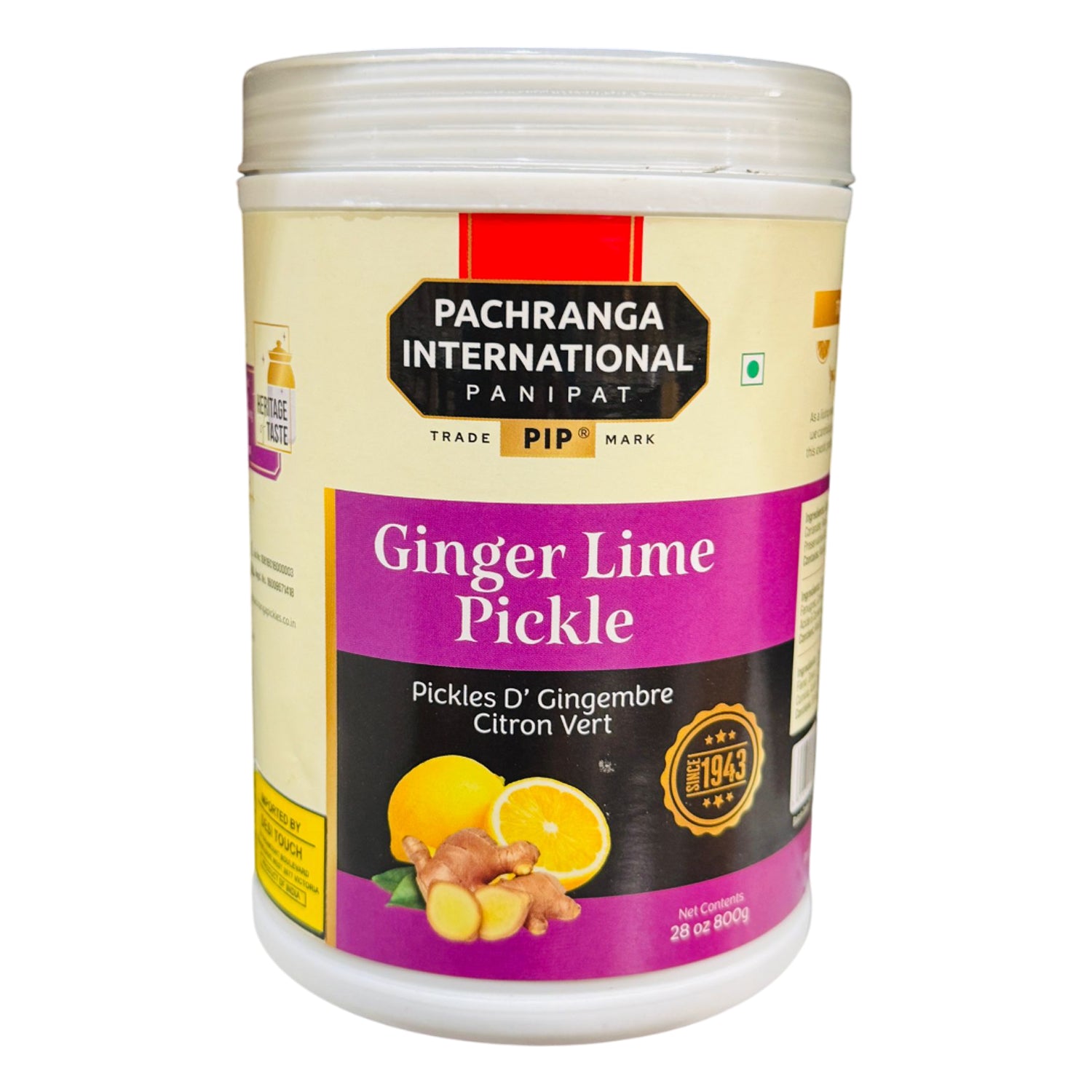 Ginger Lime Pickle 800g - Pachranga International Rich Flavour Experience: Savour the unique mix of spicy ginger and tangy lime, enhanced with a traditional blend of spices for a delightful taste. Airtight Packaging: Comes in an 800gm jar with airtight sealing to preserve freshness and quality, ensuring each serving is as delightful as the first