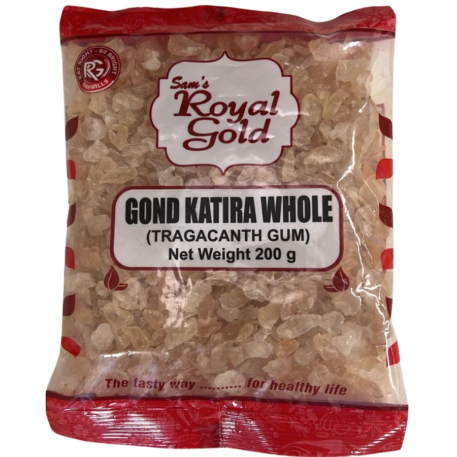 Sam's Royal Gold Gond Katira Whole (Tragacanth Gum) 200g available at Tales of India. A natural cooling resin used in summer drinks, herbal preparations, and Ayurvedic wellness recipes.