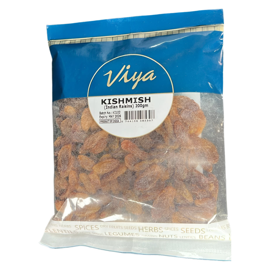 Viya Green Raisins (Sultana) 200g available at Tales of India. Premium quality seedless green raisins perfect for snacking, baking, and adding natural sweetness to recipes.