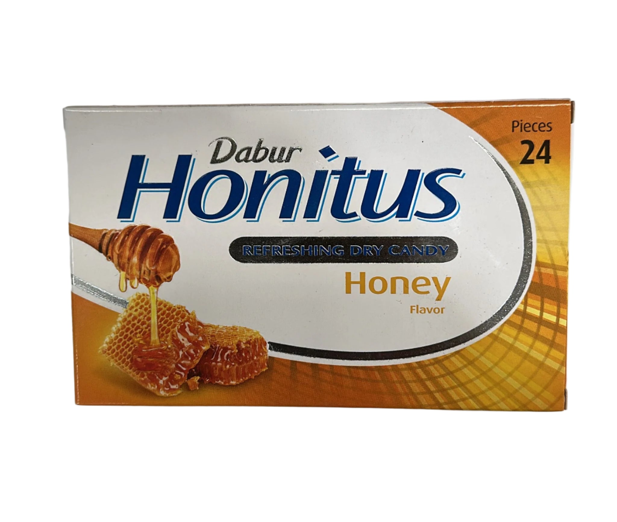 Dabur Honitus Honey 60g available at Tales of India. Honey-based herbal lozenges enriched with natural ingredients to soothe throat irritation and promote respiratory wellness.