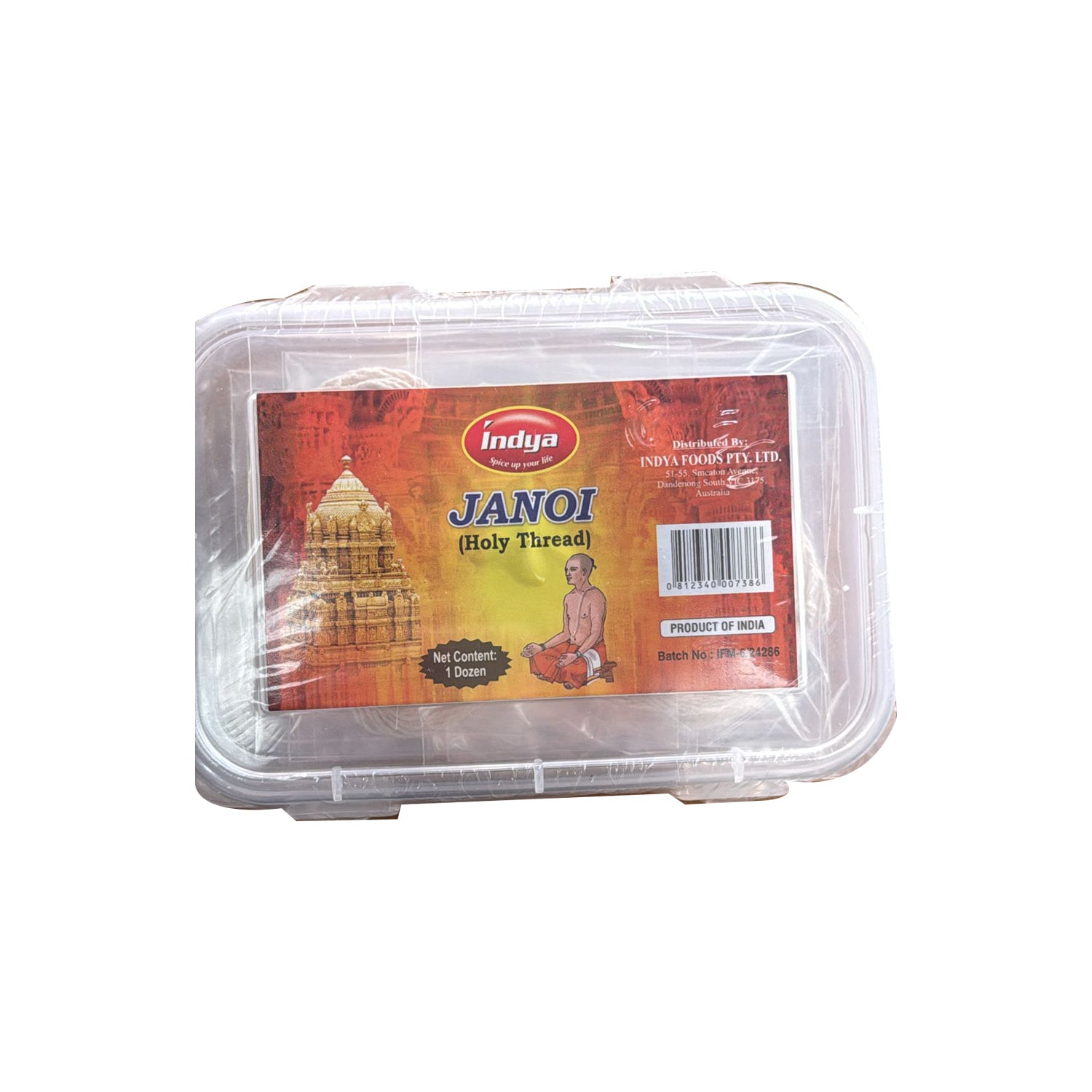 The Janeu, also known as Yagnopaveetham or sacred thread, is a thin cotton thread worn by Hindu Brahmins, and sometimes by other castes like Vaishyas and Kshatriyas, during religious ceremonies and throughout their lives. It symbolizes purity, spiritual strength, and the wearer's commitment to learning and adhering to religious duties.