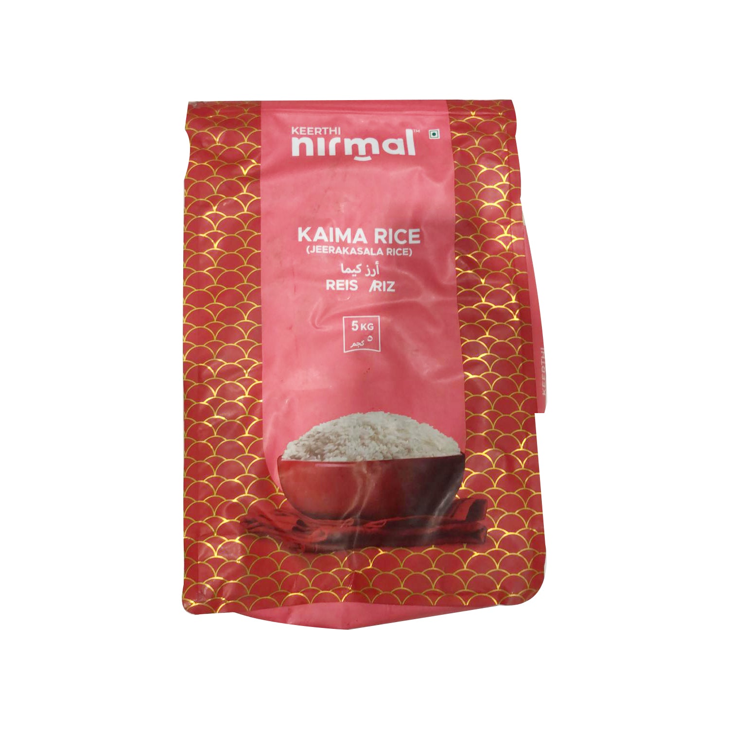 Keerthi Nirmal Kaima (Jeerakasala) Rice is a premium, aromatic, short-grain rice from Kerala known for its distinct nutty flavor and rich fragrance. This naturally aged, non-sticky rice is an ideal choice for traditional South Indian dishes like Kerala sadya, Pulao, and Kozhikode Biryani due to its ability to absorb spices and create a fluffy texture. It is also a versatile and nutritious staple, offering a delightful culinary experience for both everyday meals and festive delicacies