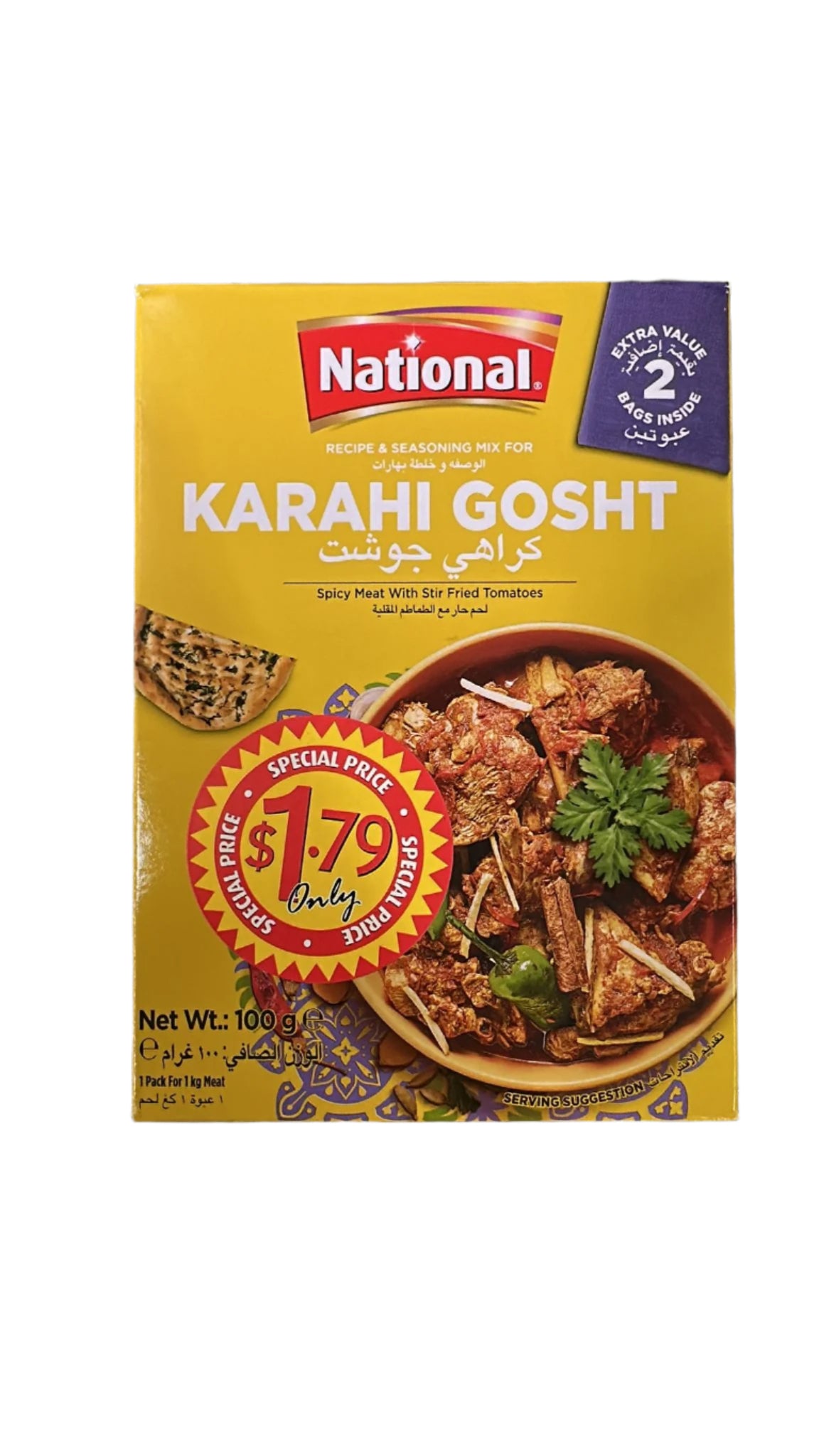 National Karahi Gosht Masala 100g available at Tales of India. An aromatic blend of spices to prepare flavorful Karahi Gosht dishes with ease.