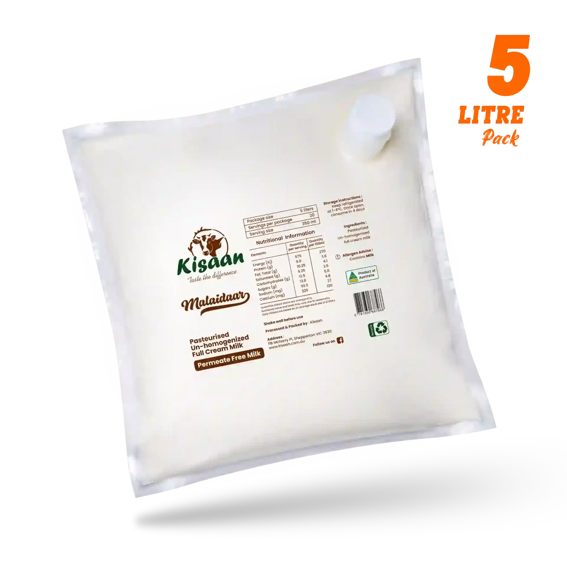 Kisaan Cow Milk Full Cream 5L available at Tales of India. Pure, creamy, and nutritious Australian cow’s milk, rich in calcium and protein for everyday health.