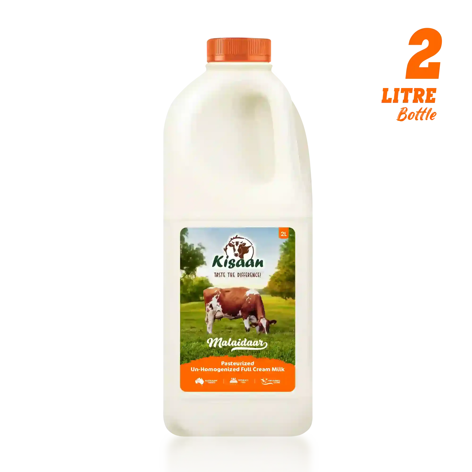 Cow Milk Full Cream 2L – Kisaan available at Tales of India. Pasteurized, un-homogenized cow milk, rich in calcium and protein for daily health.