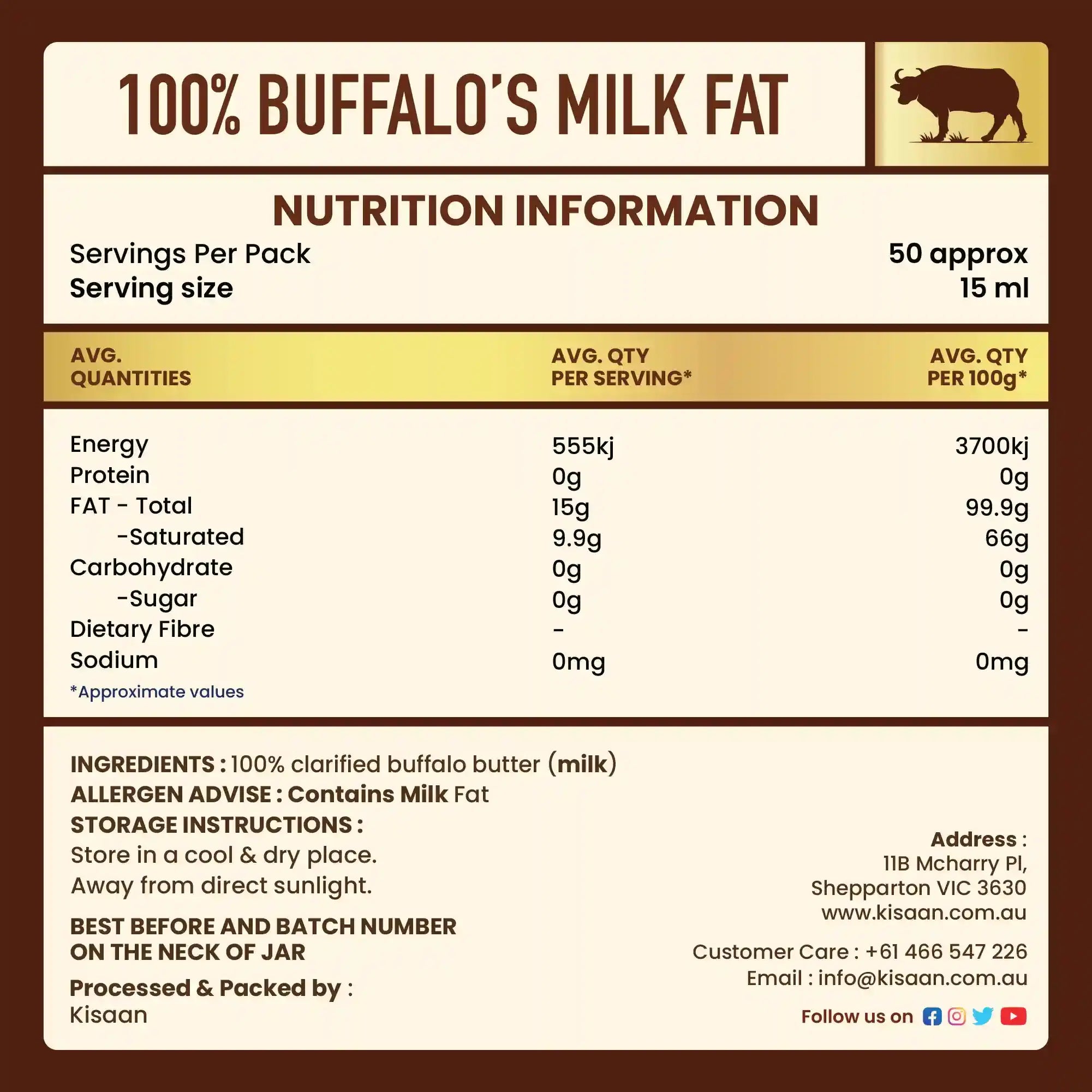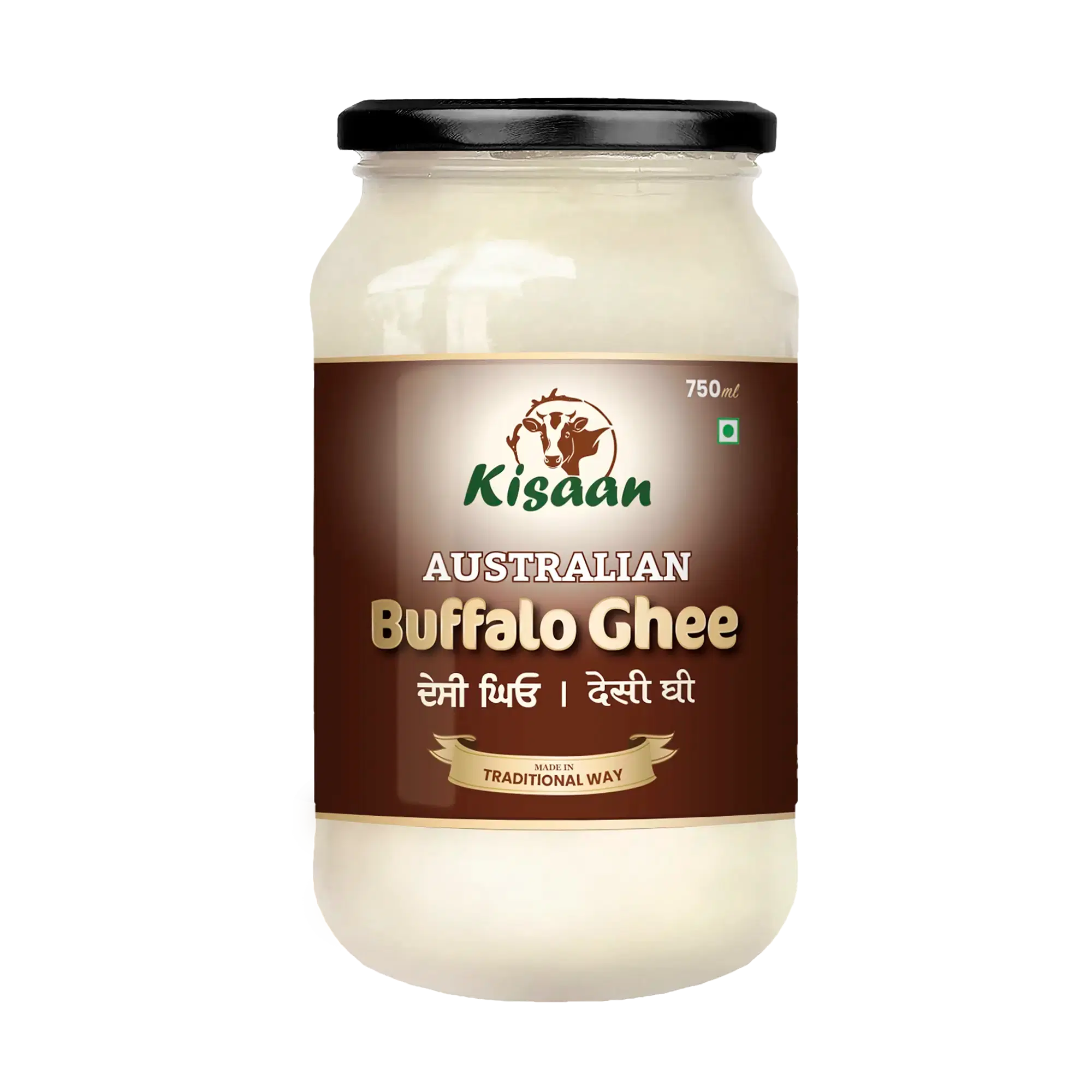 Australian Buffalo Desi Ghee 750ml – Kisaan available at Tales of India. Pure, authentic, and lactose-free ghee with rich aroma and traditional taste.