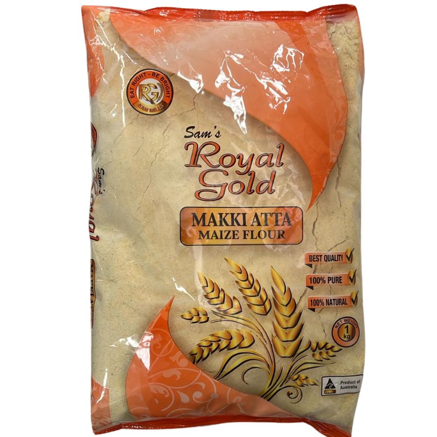 Makki Atta is also know Cornmeal. Cornmeal is flour grounded from dried maize. It is grounded at a medium and coarse consistency, but not as finely soft wheat flour. Finely grounded cornmeal is called corn flour in some countries.