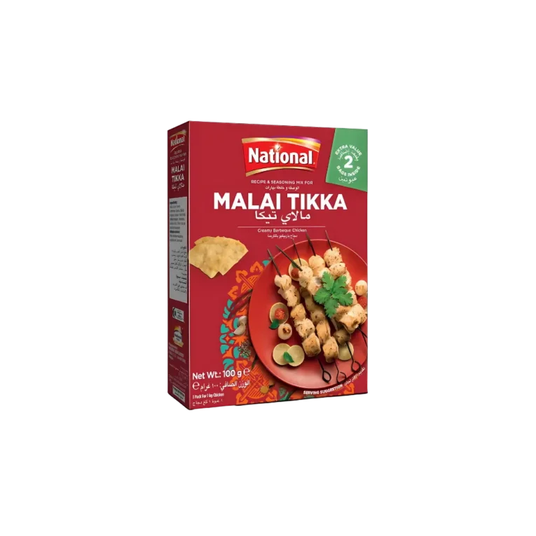 National Malai Tikka Masala 100g available at Tales of India. A creamy, aromatic spice mix to prepare rich and flavorful Malai Tikka at home with ease.