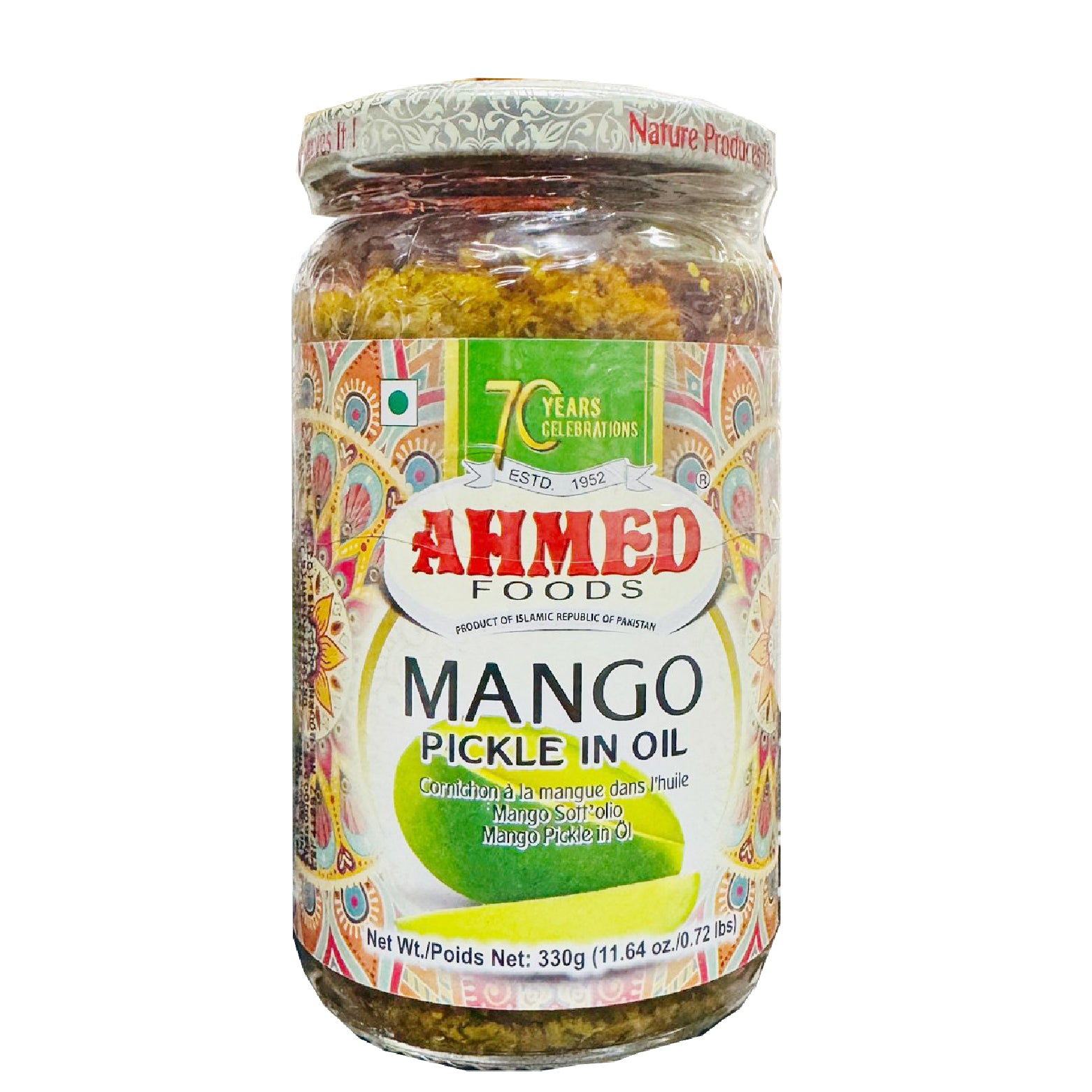 Mango Pickle in Oil 330g – Ahmed available at Tales of India. Tangy, spicy, and authentic Indian mango pickle, perfect with rice, parathas, and snacks.