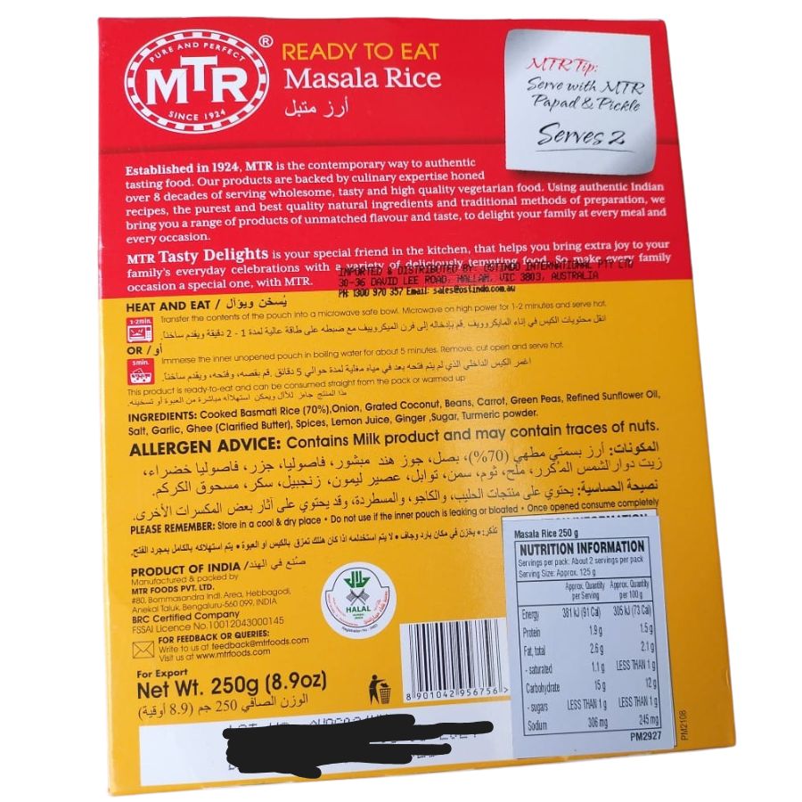 MTR Masala Rice (Spiced Basmati Rice) 250g available at Tales of India. Aromatic and flavorful spiced basmati rice ready in minutes perfect for lunch, dinner, or festive occasions.