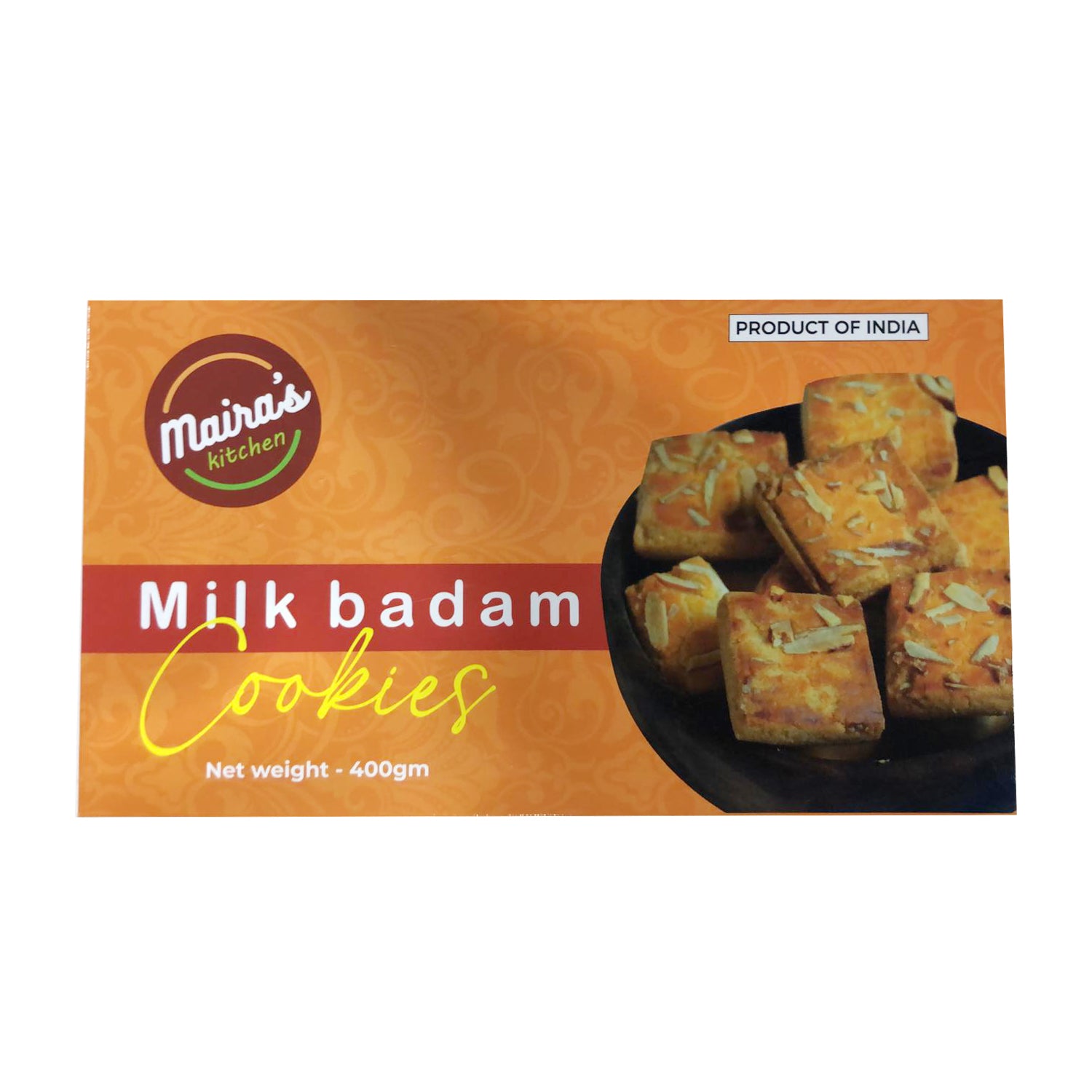 Milk Badam Cookies 400g - Maira's Kitchen These cookies offer a delightful combination of rich milk and nutty almond (badam) flavor, resulting in a sweet and wholesome taste experience. They likely have a crisp and crunchy texture, potentially even melting in the mouth.