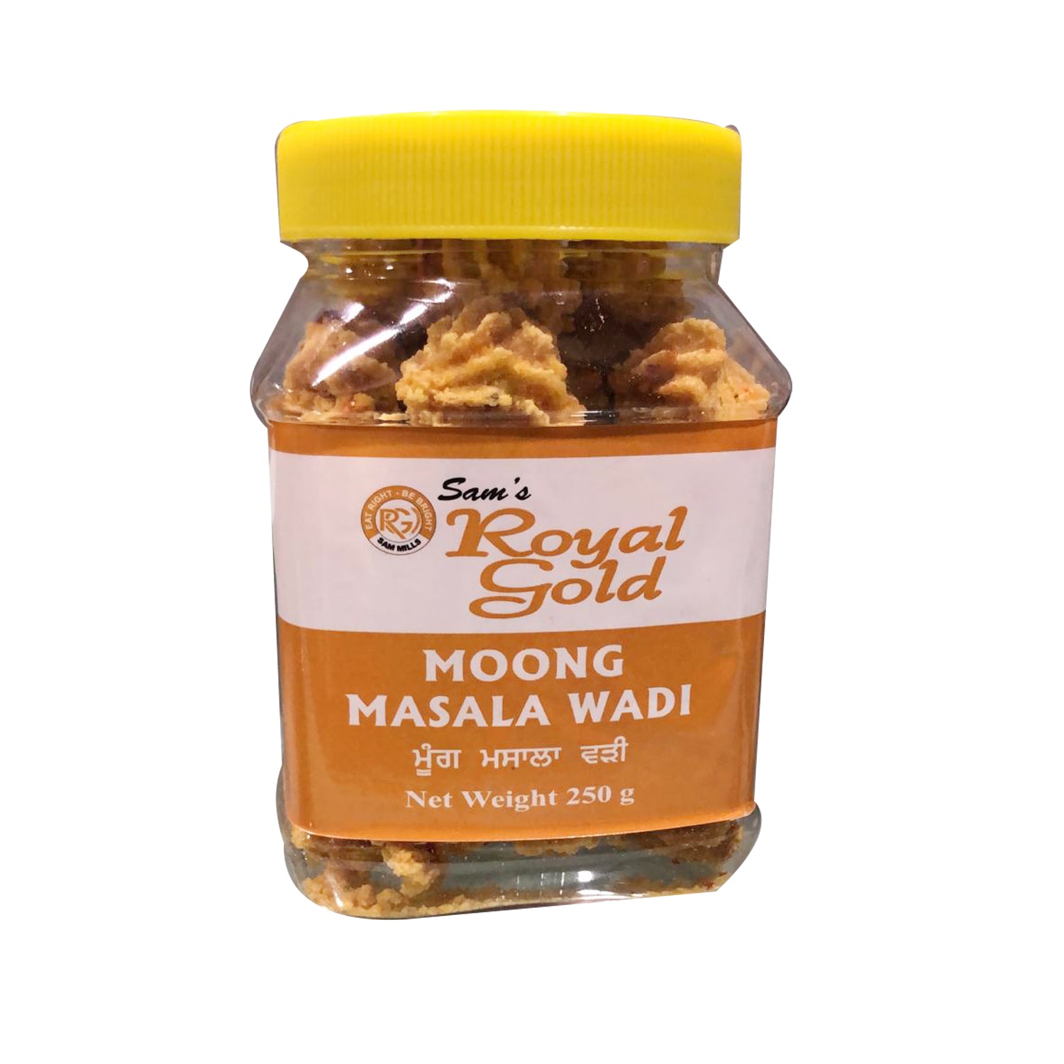 Royal Gold Moong Masala Wadi is a ready-to-cook, sun-dried dumpling made from spiced moong lentils. The 250g package contains spicy and nutritious nuggets (also known as mangodi or vadi) that are popular in North Indian cuisine, particularly in the summer