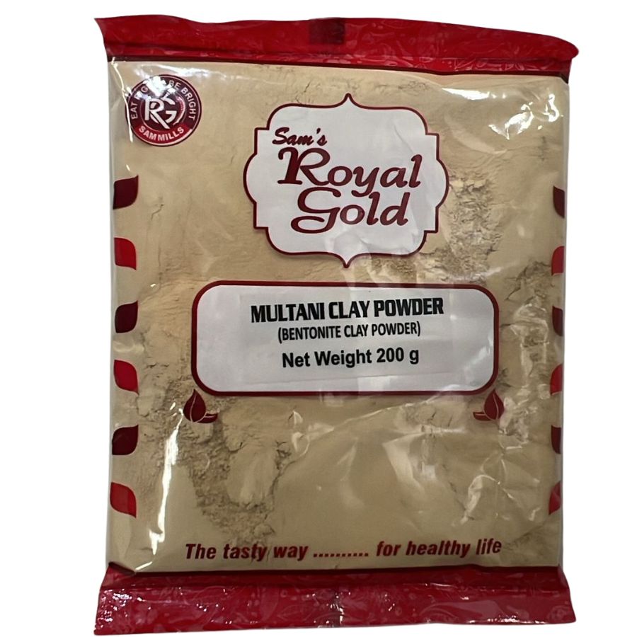 Royal Gold Multani Mitti Powder 200g available at Tales of India. Natural and cooling fuller’s earth powder ideal for cleansing, brightening, and rejuvenating the skin.