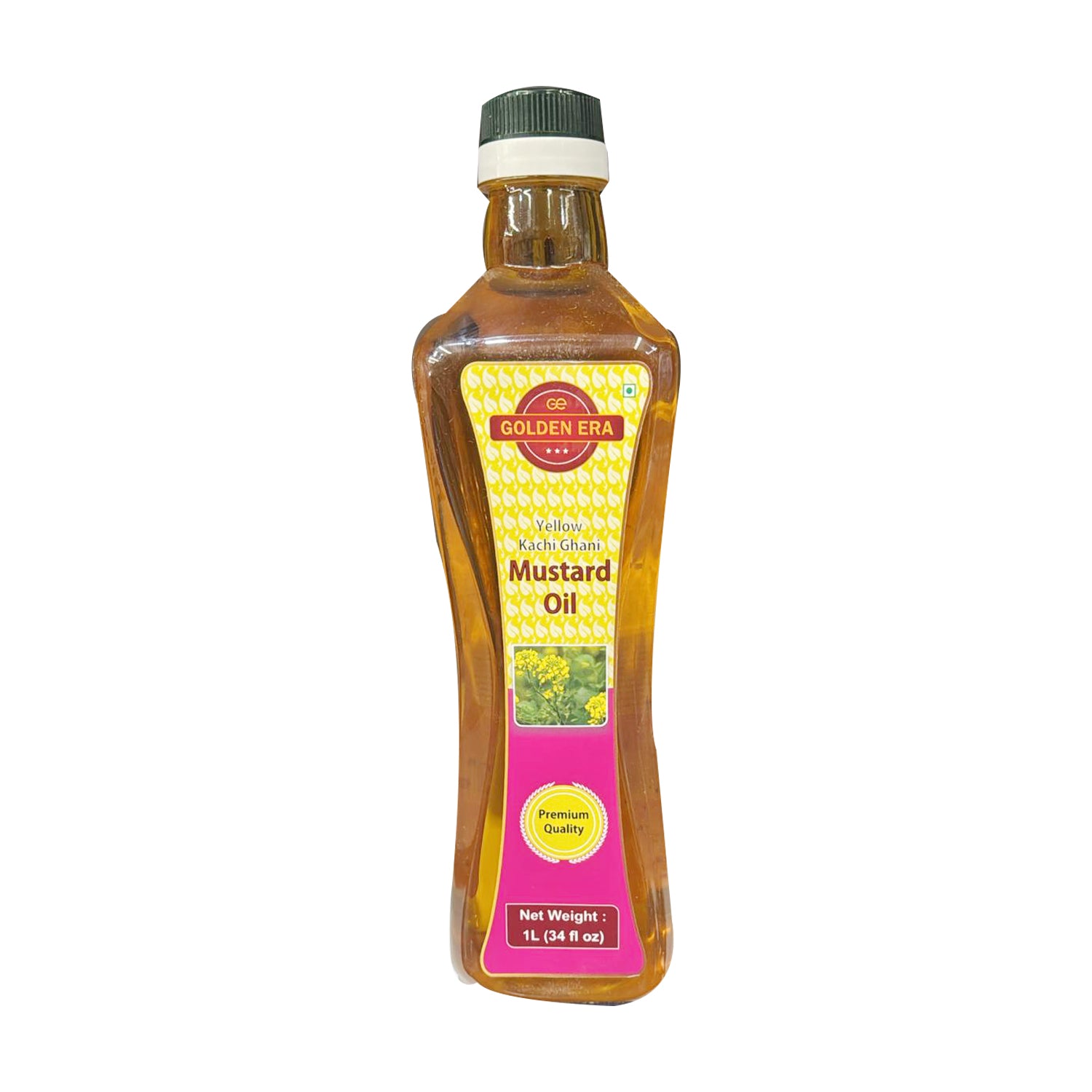 Mustard Oil (Kachi Ghani ) 1L - Golden Era Cold-Pressed & Unrefined – Extracted using traditional Kachi Ghani methods to preserve natural nutrients and flavor. Rich Aroma & Pungent Taste – Enhances the taste of pickles, curries, and stir-fries. Versatile Usage – Ideal for cooking, deep frying, pickling, and tempering spices