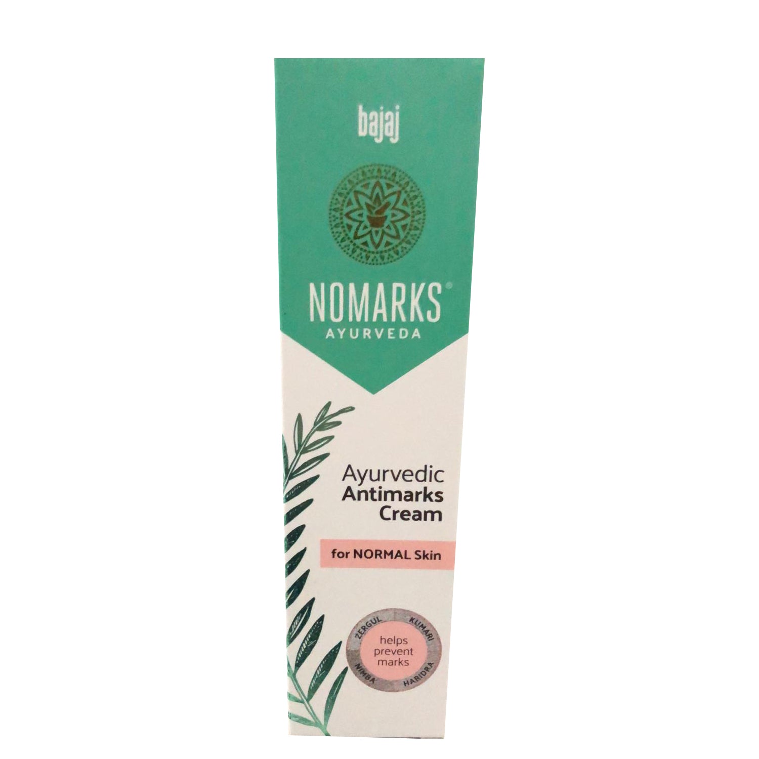 Bajaj Nomarks Ayurveda Antimarks Skin Cream is an Ayurvedic formulation designed to reduce dark spots, pimple marks, and blemishes by addressing them at their root through a four-step process: soothing, restoration, protection, and prevention. It uses potent herbal ingredients like Aloe Vera (Kumari) for skin repair, Amla (Amalaki) for antioxidant protection, and Neem (Nimbuka) for its antibacterial properties, with specific variations formulated for different skin types, such as oily, normal, and dry skin.