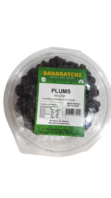 Baharatchi Plums (Seedless Dried Plumbs) 300g available at Tales of India. Naturally sweet, seedless dried plums rich in fiber and nutrients for healthy snacking.