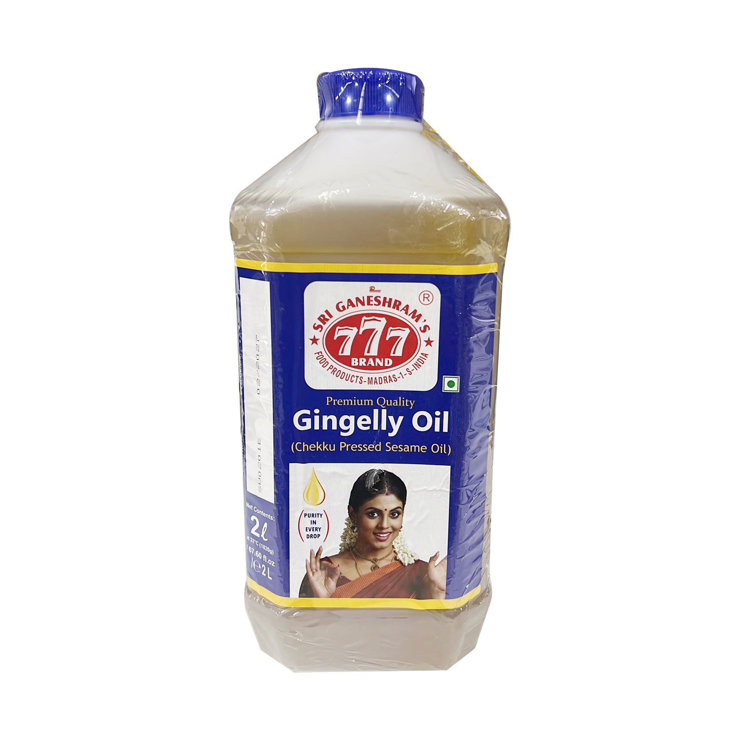 Premium Quality Gingelly Oil 2L – 777 available at Tales of India. Pure, cold-pressed sesame oil ideal for cooking, seasoning, and enhancing Indian dishes.