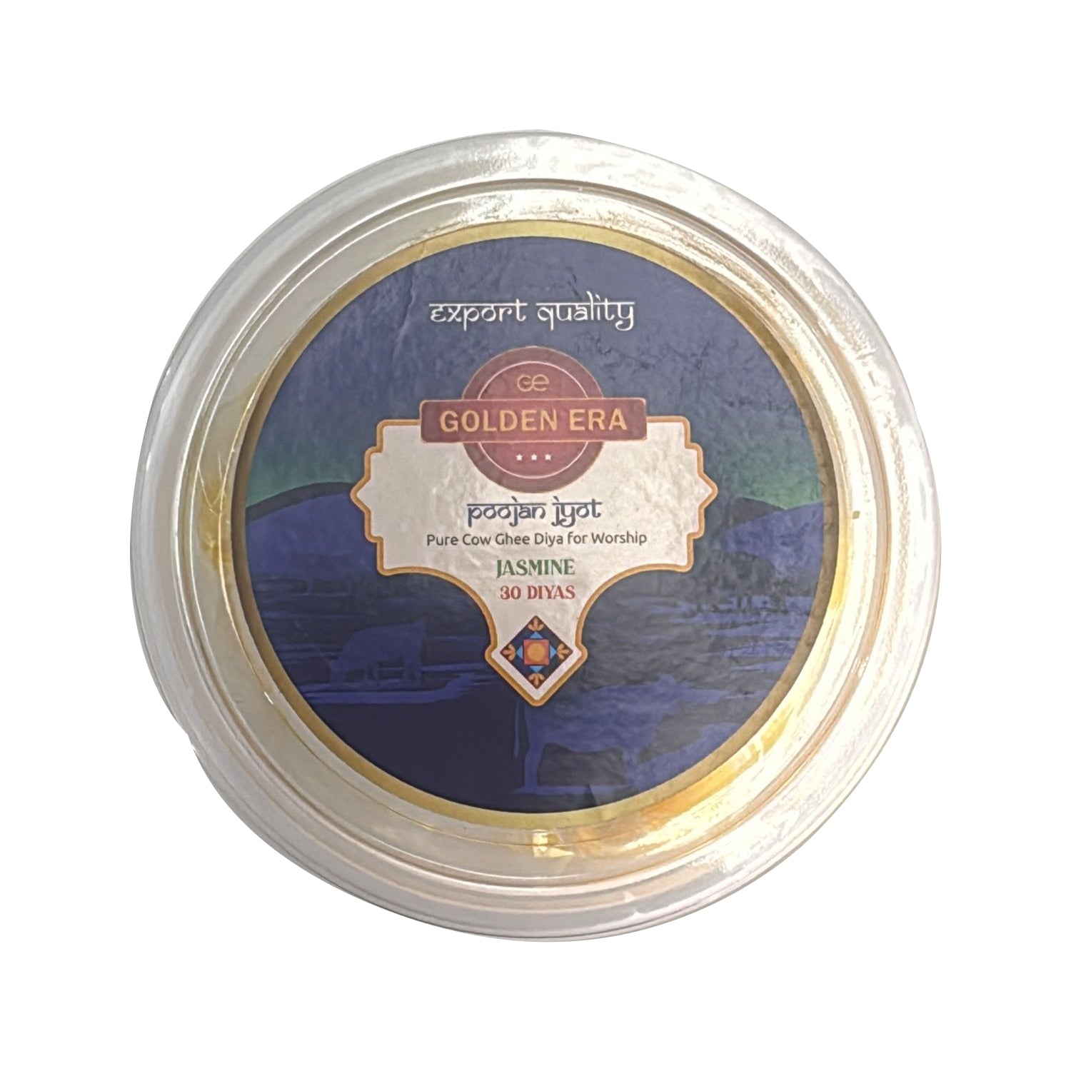 Pure Cow Ghee Diyas with a jasmine fragrance and a golden era aesthetic are essentially pre-made, ready-to-use lamps crafted from pure cow ghee and a cotton wick. These diyas are designed for ease of use in religious ceremonies and daily worship, offering a clean, smokeless, and fragrant experience. They are a convenient alternative to traditional ghee diyas, eliminating the need for manual preparation and ensuring a consistent burn