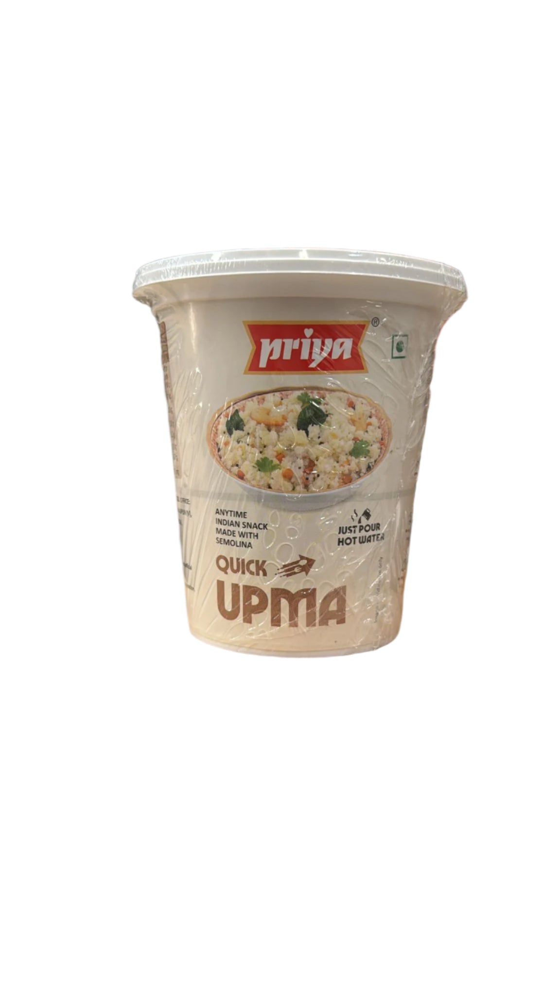 Priya Quick Upma in Cup 80g available at Tales of India. A tasty and convenient instant South Indian breakfast, ready in minutes by just adding hot water.