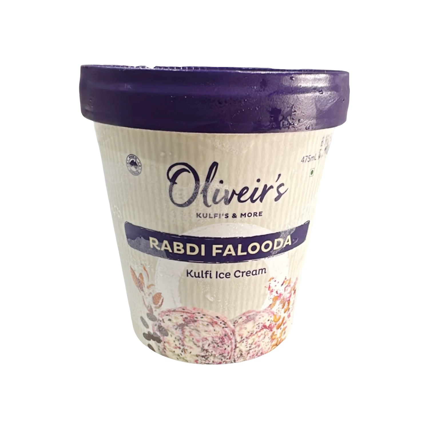 Oliveir’s Rabri Falooda Kulfi Ice Cream 475ml available at Tales of India. Creamy kulfi layered with sweet rabri and falooda for an indulgent traditional dessert experience.