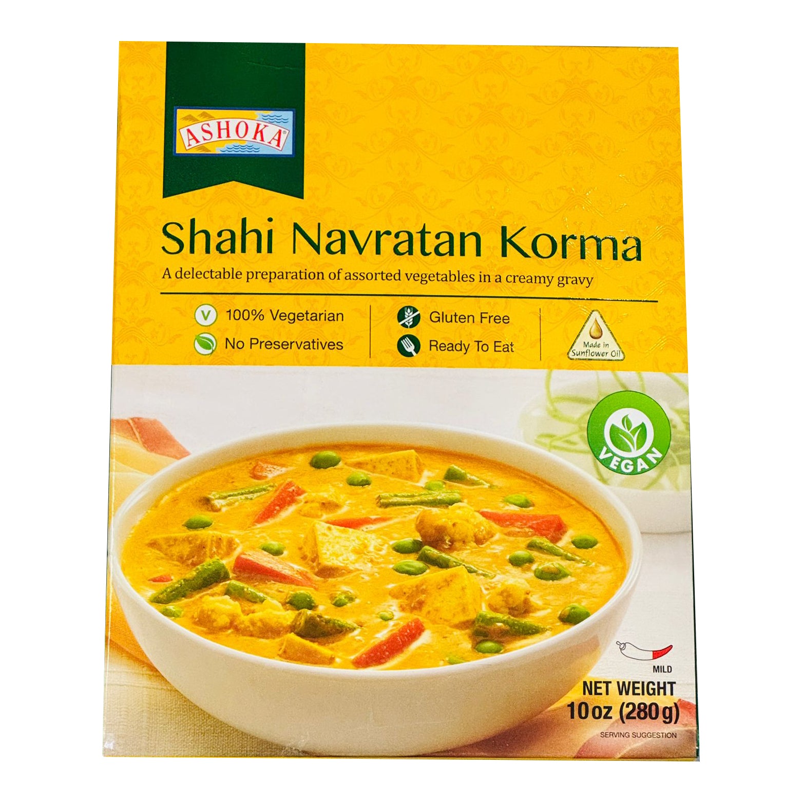 Ashoka Shahi Navratan Korma (Ready to Eat) 280g available at Tales of India. A rich and creamy Mughlai curry with mixed vegetables and nuts, ready in minutes.