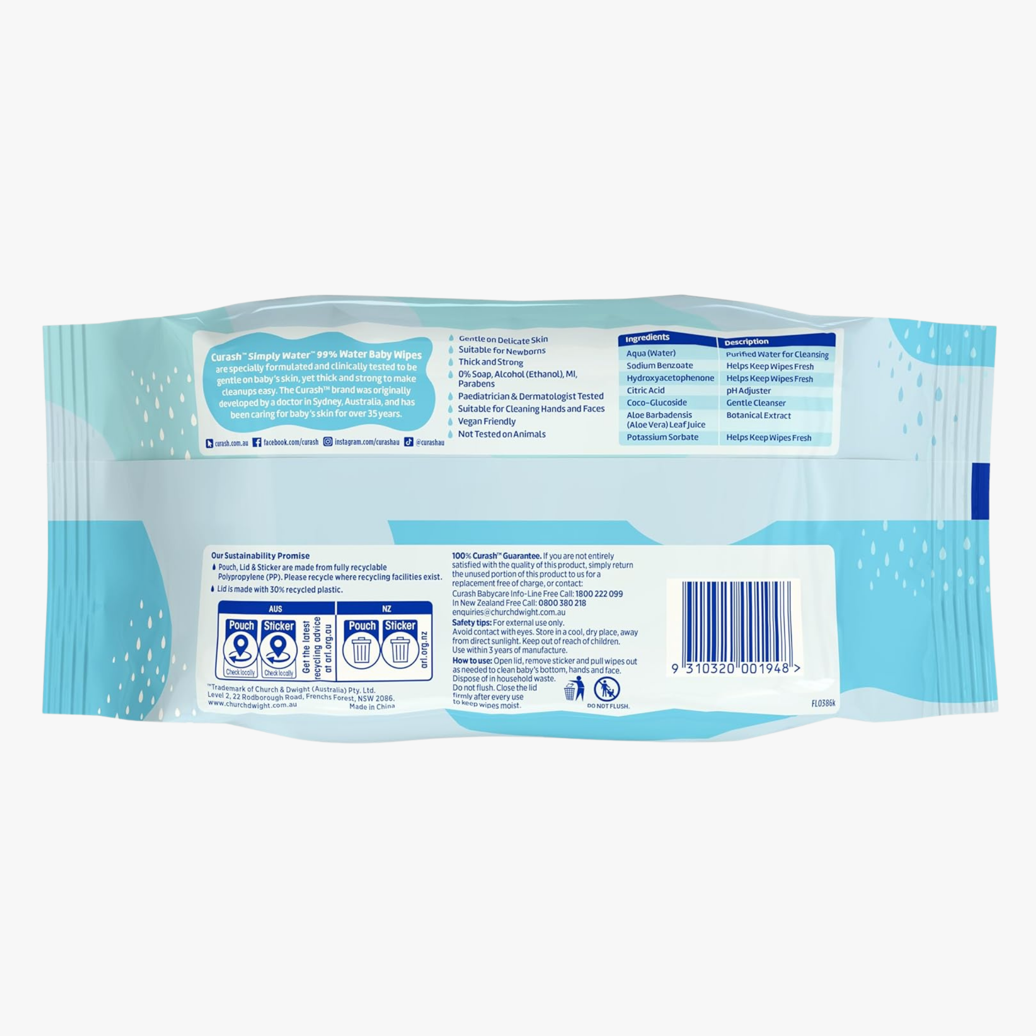 Curash Simply Water Sensitive Skin Baby Wipes are gentle, ultra-soft wipes designed for babies with delicate or sensitive skin. Made primarily from natural origin ingredients, these wipes cleanse effectively while being thick, strong, and absorbent enough for everyday messes. Dermatologist and paediatrician tested, they are safe for newborns, vegan-friendly, and cruelty-free.
